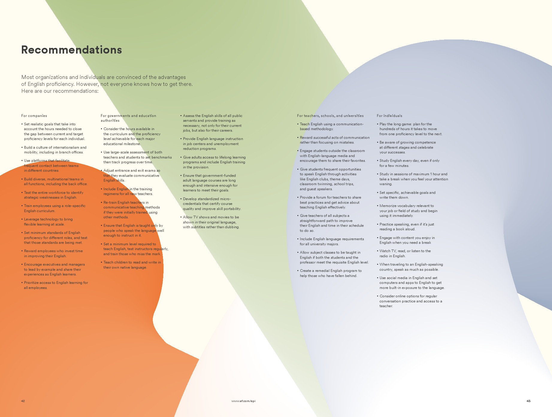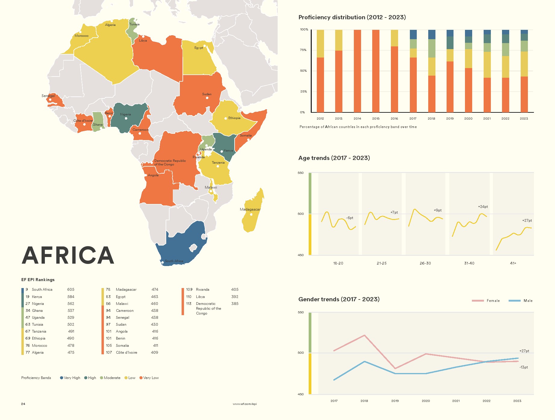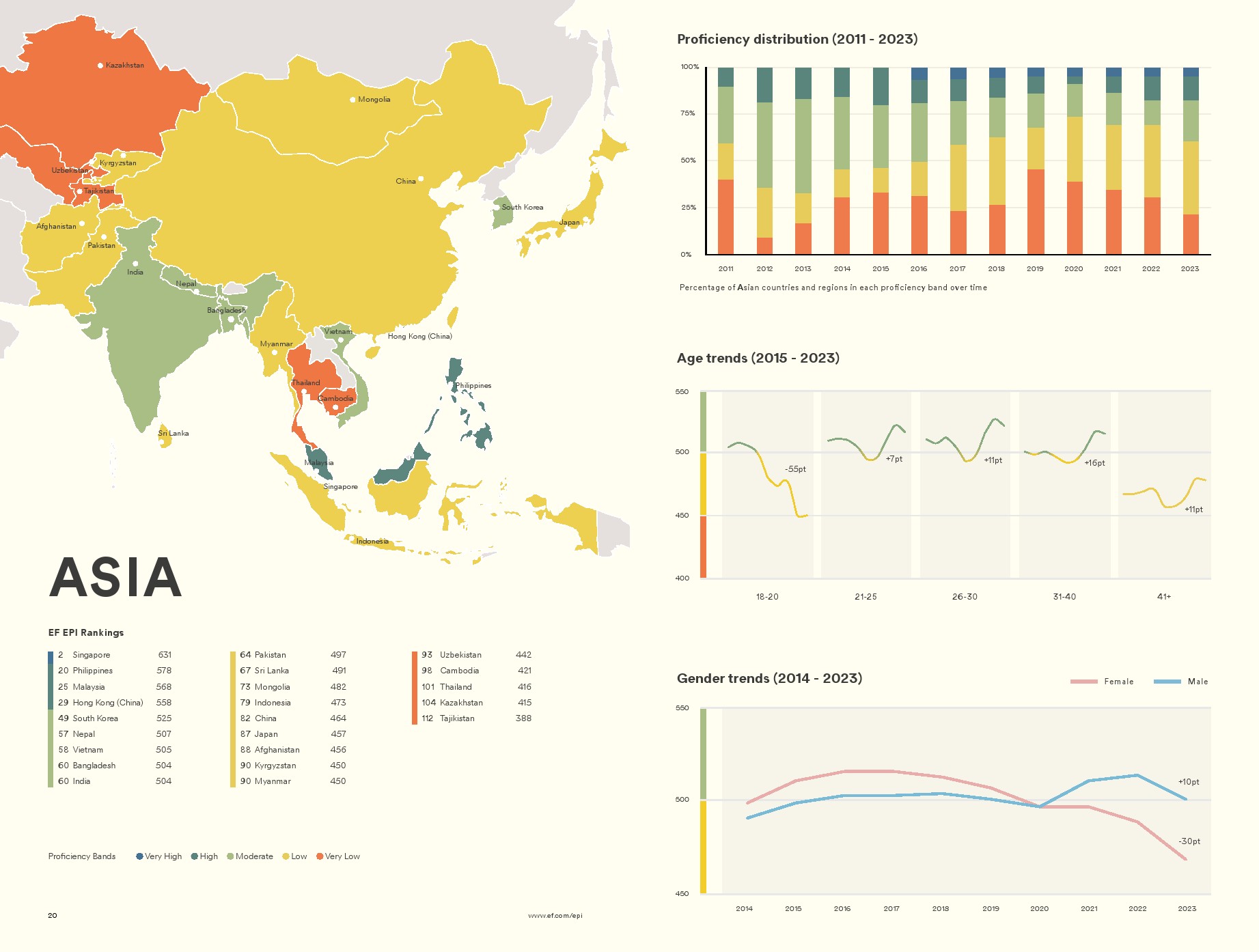 自2015年以来,在职成年人的英语水平一直在提高,这是我们首次按年龄组报告英语水平。这些进步发生得太快了,不能完全用更年轻、更熟练的英语使用者年龄的增长来解释。成年人也在通过认可的培训计划或兼职的个人发展,提高工作场所的熟练程度。这一发现与过去十年来对专业英语课程的需求不断增长相吻合,因为企业和员工都在寻求弥合全球化工作场所的要求与主流教育中所学到的英语技能之间的差距。