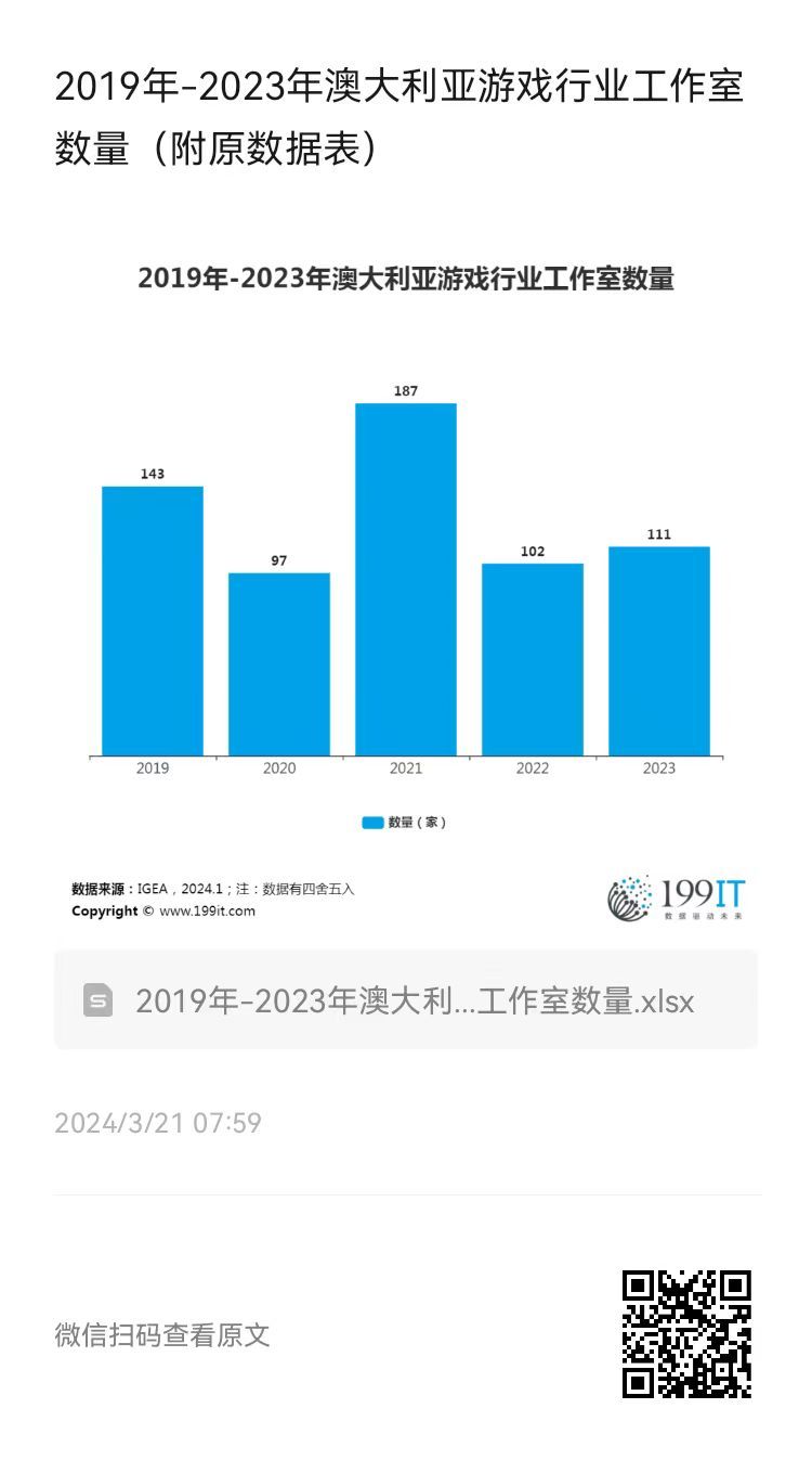 2019年-2023年澳大利亚游戏行业工作室数量(附原数据表) ​​​
