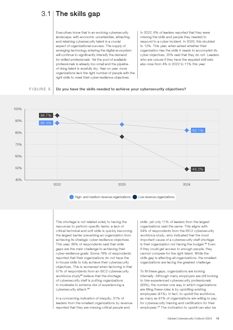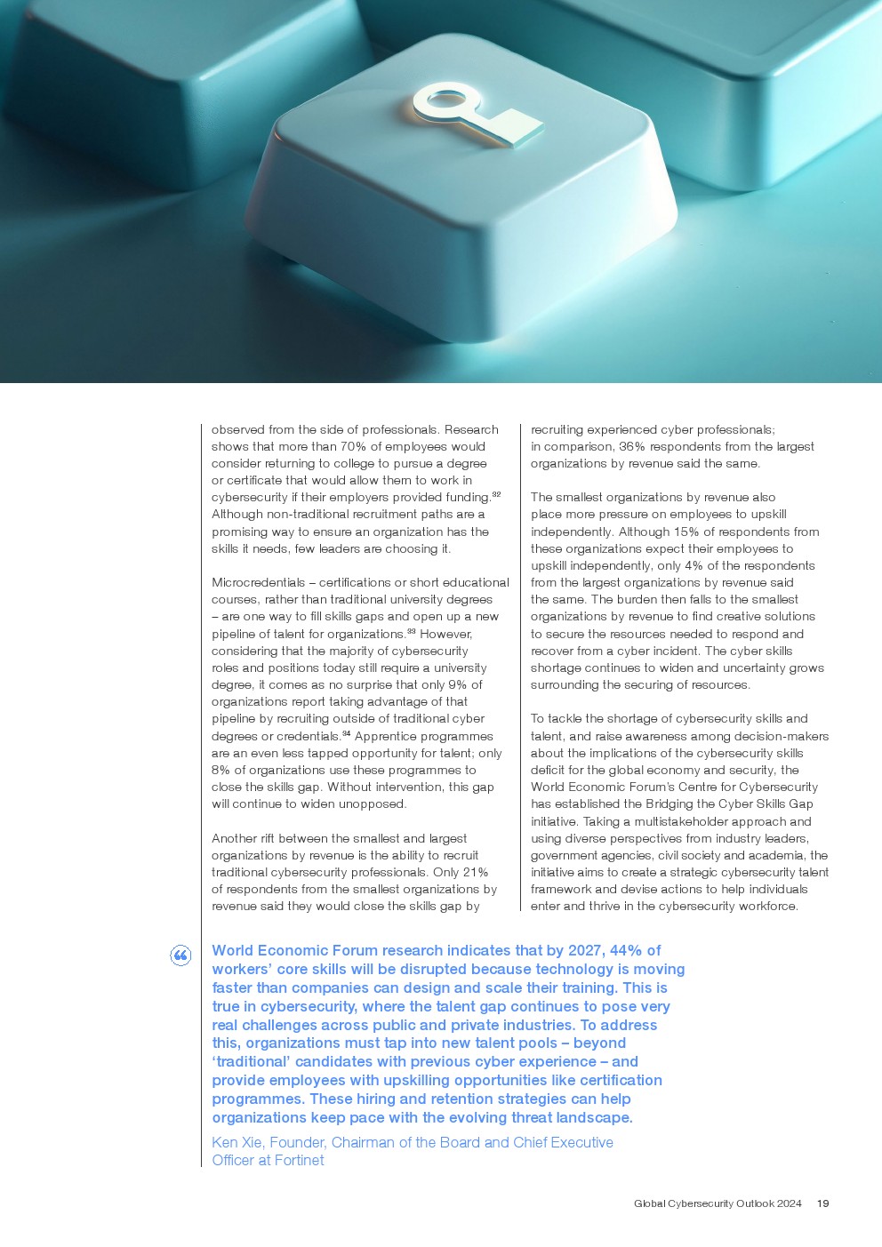 只有15%的组织乐观地认为网络技能和教育将在未来两年内显著改善。