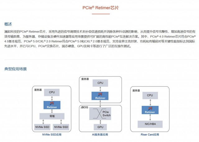 1、PCIe Retimer芯片:受益于AI服务器需求的快速增长,凭借优异的产品性能及卓有成效的市场拓展,澜起科技的PCIe Retimer芯片成功导入境内外主流云计算/互联网厂商的AI服务器采购项目,并已开始规模出货。2024年第一季度,公司的PCIe Retimer芯片单季度出货量约为15万颗,超过该产品2023年全年出货量的1.5倍。