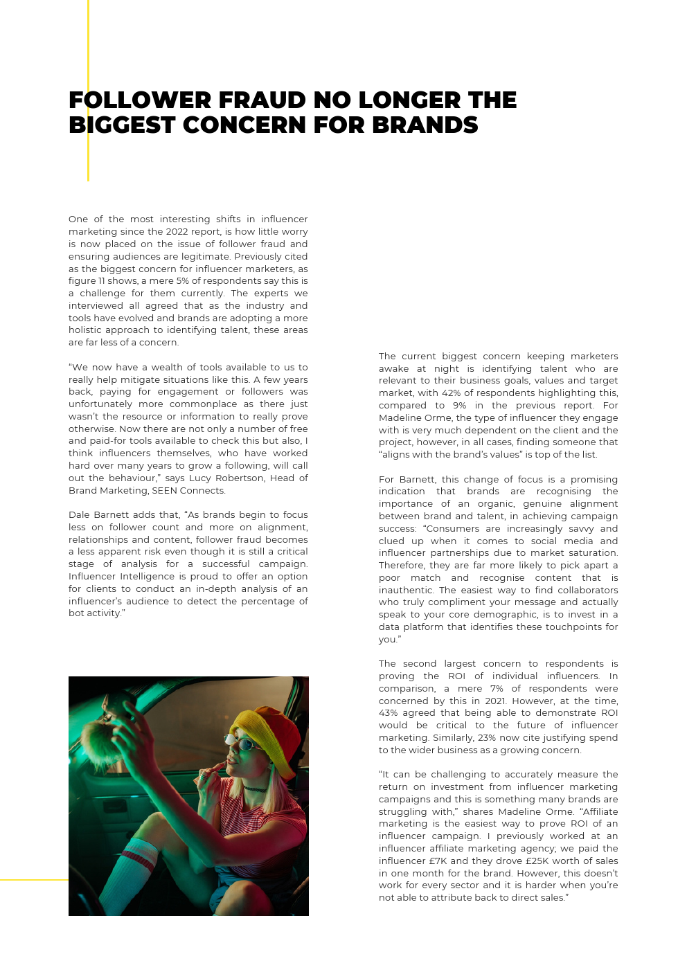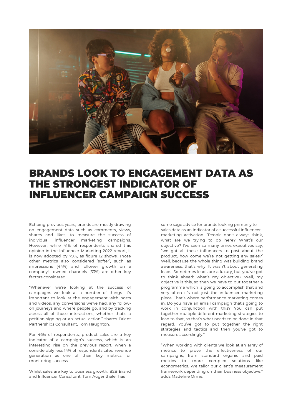 在过去的一年,受访者面临的第二大挑战(33%)是证明个人意见领袖的投资回报率。47%的人认为更大的问责制和投资回报率将成为2024年主导网红营销的最大趋势之一。