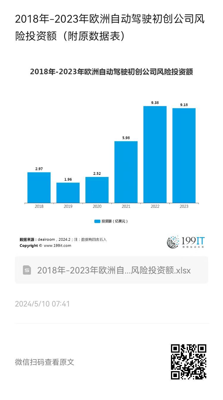 2018年-2023年欧洲自动驾驶初创公司风险投资额(附原数据表) ​​​