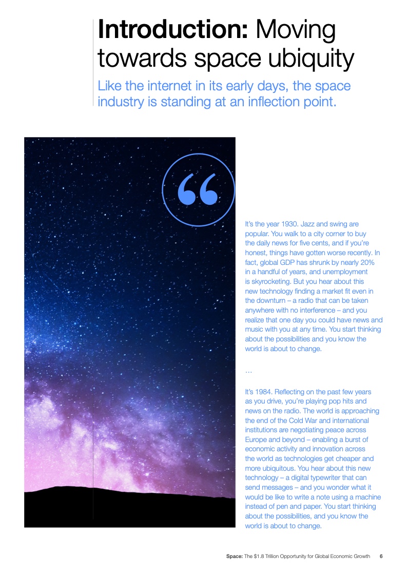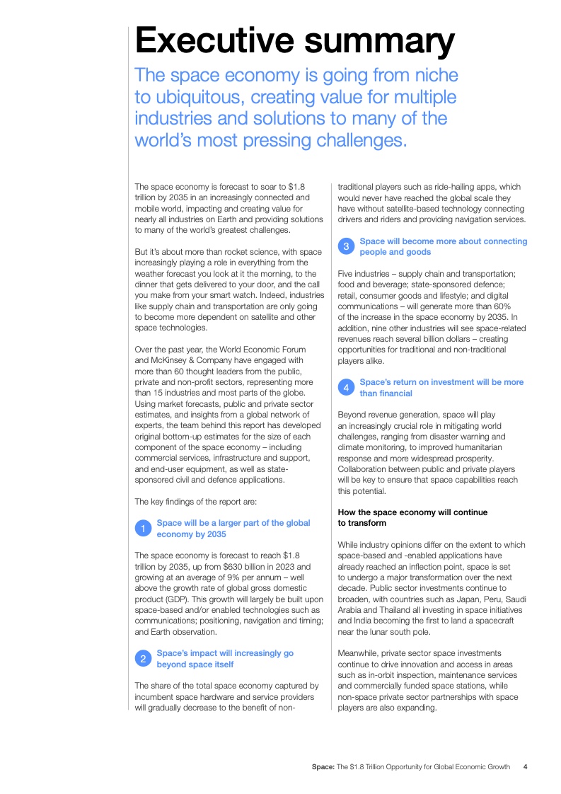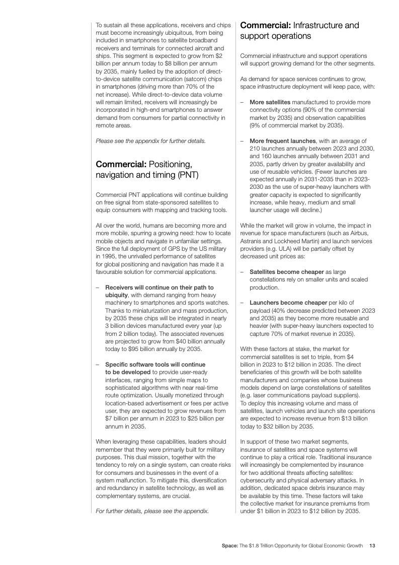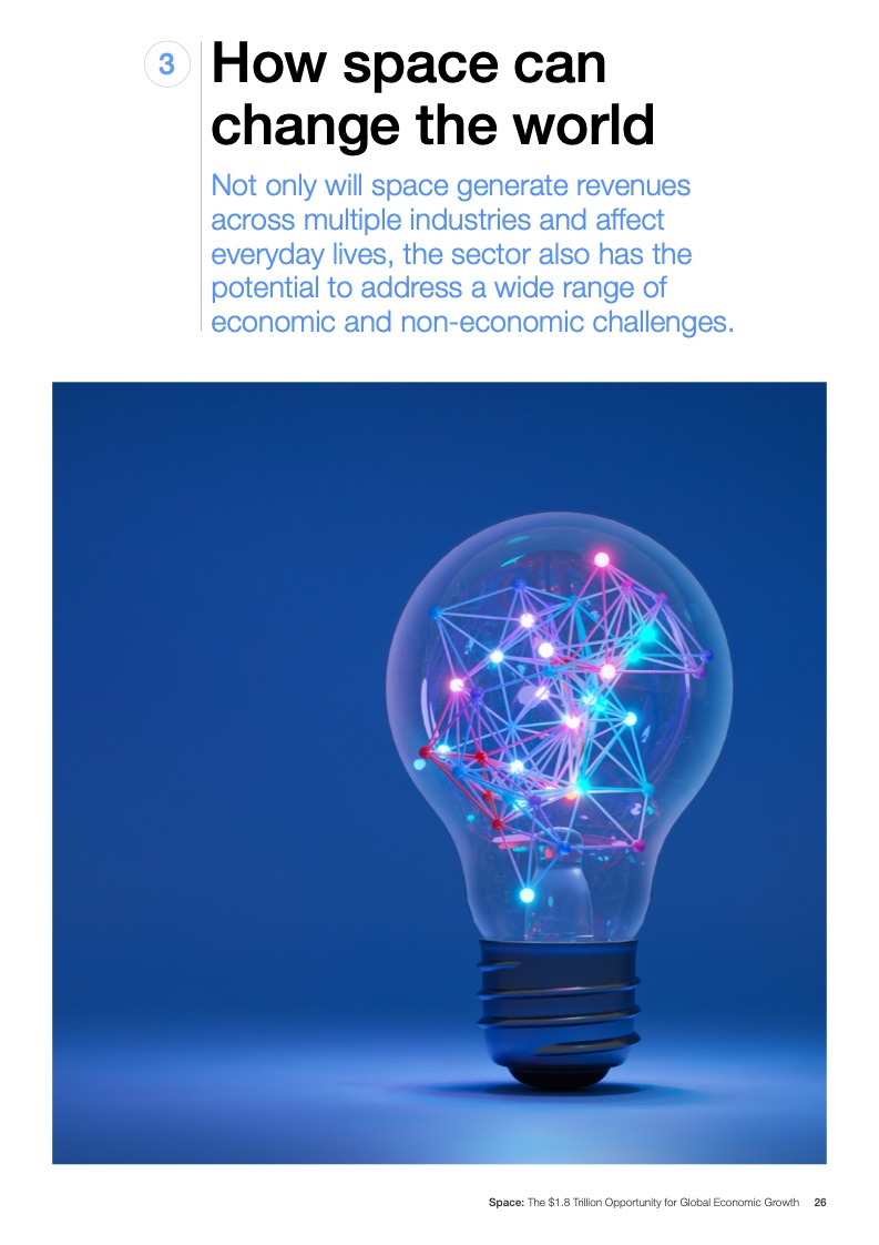 到2035年,供应链和交通业、食品和饮料业、国防业、数字通信业以及零售、消费品和生活方式类行业等五大行业预计将创造全球太空经济总量的60%,其他行业也将起到一定作用。