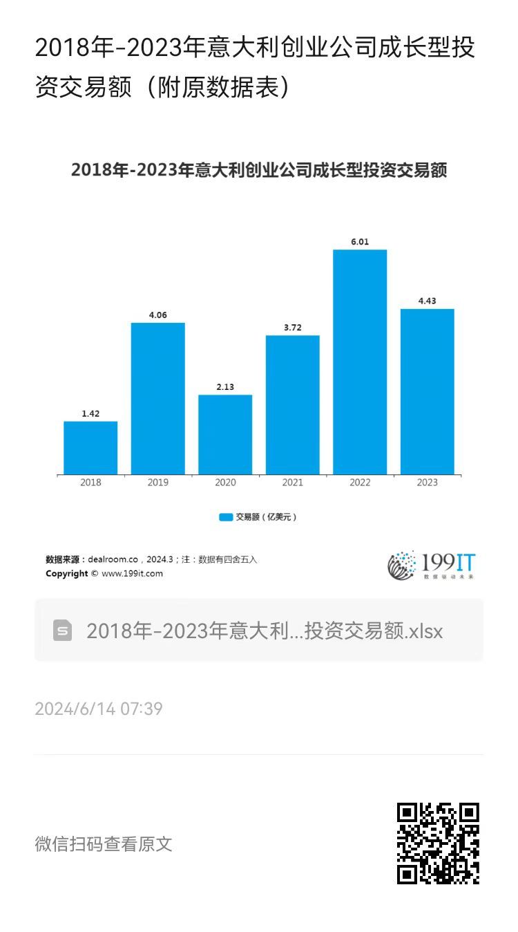 - 2018年-2023年意大利创业公司后期投资交易额(附原数据表)