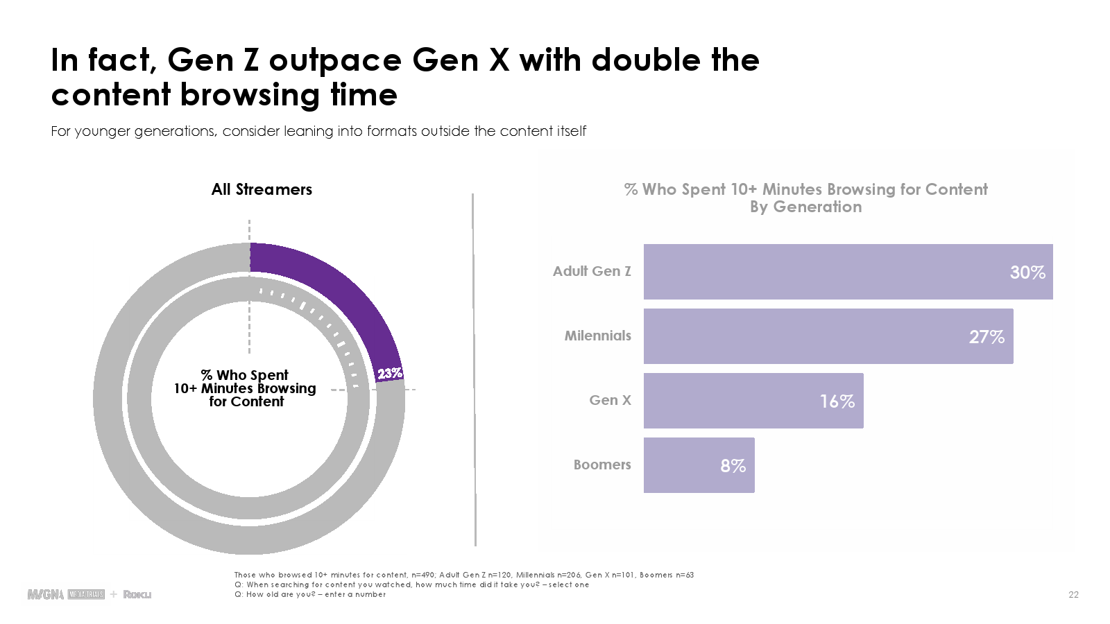 使用有助于内容发现的广告格式来吸引流媒体用户,并帮助他们找到喜欢的内容,尤其是在对年轻人群感兴趣的情况下,因为流媒体用户更有可能通过流媒体服务的主页(2.8倍)或热门播放列表(3.8倍)发现新内容,而不是通过口碑推荐。
