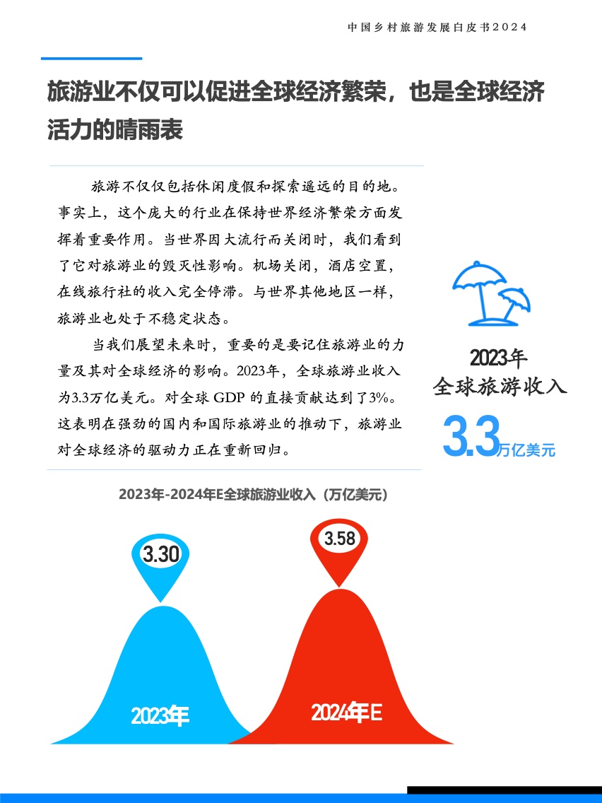 旅游不仅仅包括休闲度假与探索遥远的目的地,事实上这个庞大的行业在保持世界经济繁荣方面发挥着重要作用。当世界因大流行而关闭时,我们看到了它对旅游业的毁灭性影响。机场关闭,酒店空置,在线旅游平台业务受挫,与全球其他行业一样,旅游业也处于不稳定状态。当我们展望未来时,最重要的是要记住旅游业的力量及其对全球经济的影响力。2023年,全球旅游业收入为3.3万亿美元。直接贡献了全球GDP的3%。这表明在强劲的旅游业复苏趋势推动下,旅游业对全球经济的驱动力正在重新释放。