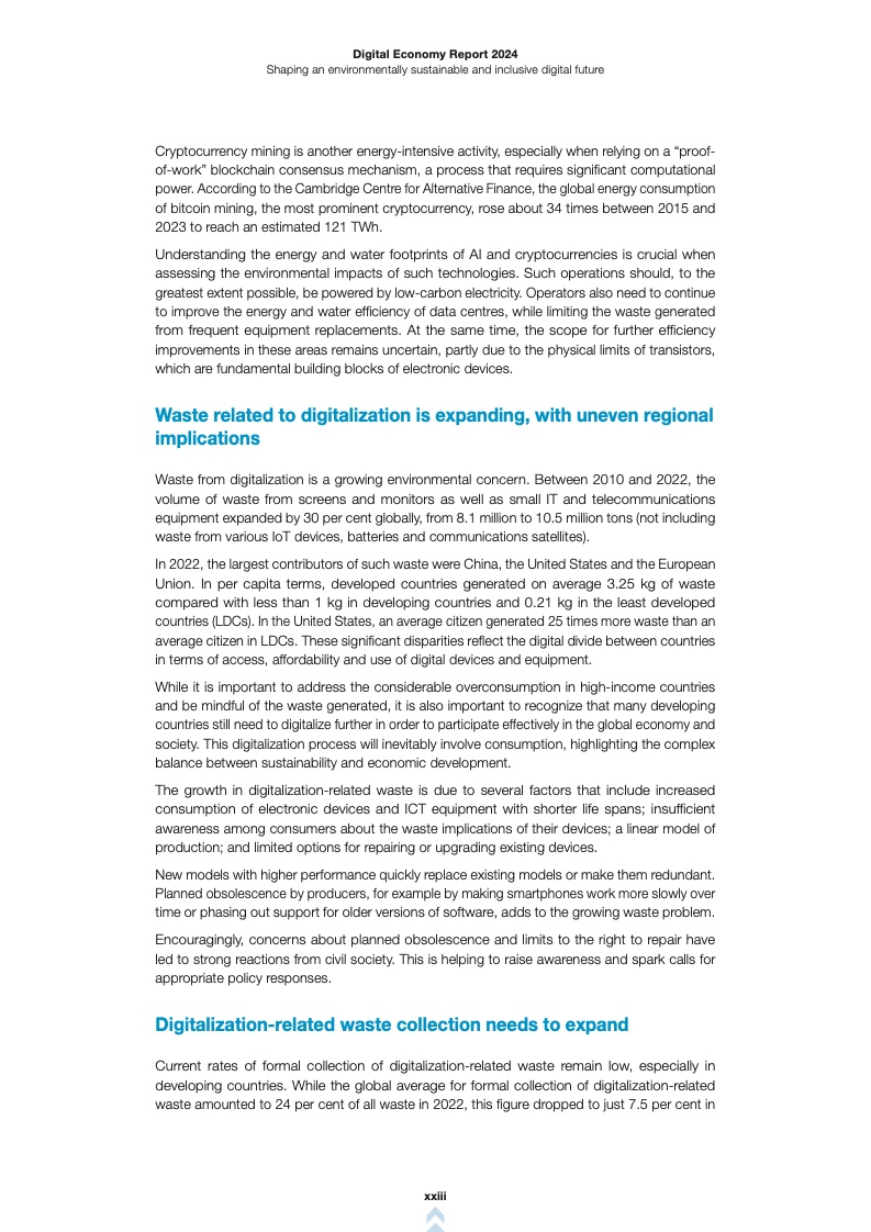 贸易和发展组织呼吁国际社会实施全面的政策,促进循环型数字经济,最大限度地减少对环境的影响,缩小数字鸿沟。大多数发展中国家需要进一步数字化,以有效参与全球经济。政府、行业领导者和公民社会必须立即做出协调努力,以实现可持续和包容性的数字发展。