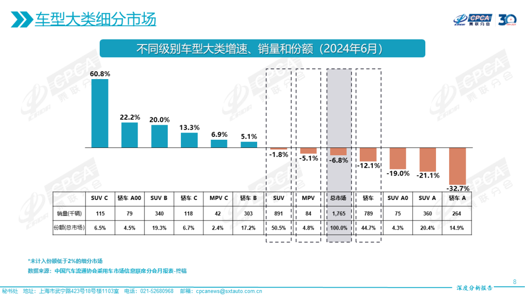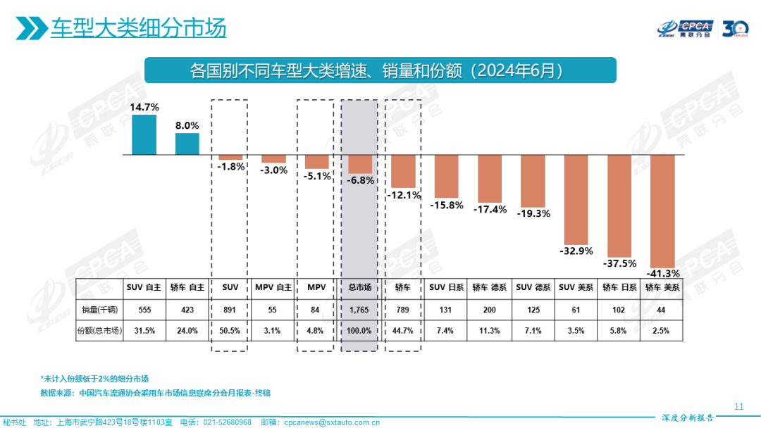 乘联会:2024年6月份全国乘用车市场深度分析报告 本文为中国汽车流通协会乘用车市场信息联席分会发布的权威深度市场分析报告,涵盖了: 一、总体市场 二、车型大类细分市场 三、国别细分市场 四、品牌定位细分市场 五、价格定位细分市场 更多阅读:乘联会:2025年3月份全国乘用车市场深度分析报告中国汽车流通协会:2020年11月份全国乘用车市场深度分析报告中国汽车流通协会:2020年2月份全国乘用车市场深度分析中国汽车流通协会:2022年5月全国乘用车行业运行评价中国汽车流通协会:2024年7月全国乘用车市场运行特征分析中国汽车流通协会:2018年11月份全国乘用车市场深度分析报告中国汽车流通协会:2019年5月份全国乘用车市场分析乘联会:2023年8月汽车零售销量排名快报乘联会:2023年8月皮卡厂商批发销量排名快报乘联会&威尔森:2023年8月汽车OTA监测月报乘联会:2023年5月份国内狭义乘用车市场零售销量达174.2万辆乘联会&威尔森:2023年4月OTA监测月报乘联会:2024年6月份全国乘用车市场分析乘联会:2024年5月份全国乘用车市场深度分析报告乘联会:2023年7月汽车皮卡厂商批发销量排名快报