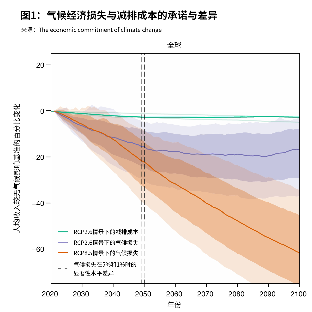 气候变化的经济成本是减排成本的 6 倍。Image: 《自然》/Kotz, M., Levermann, A. & Wenz, L.