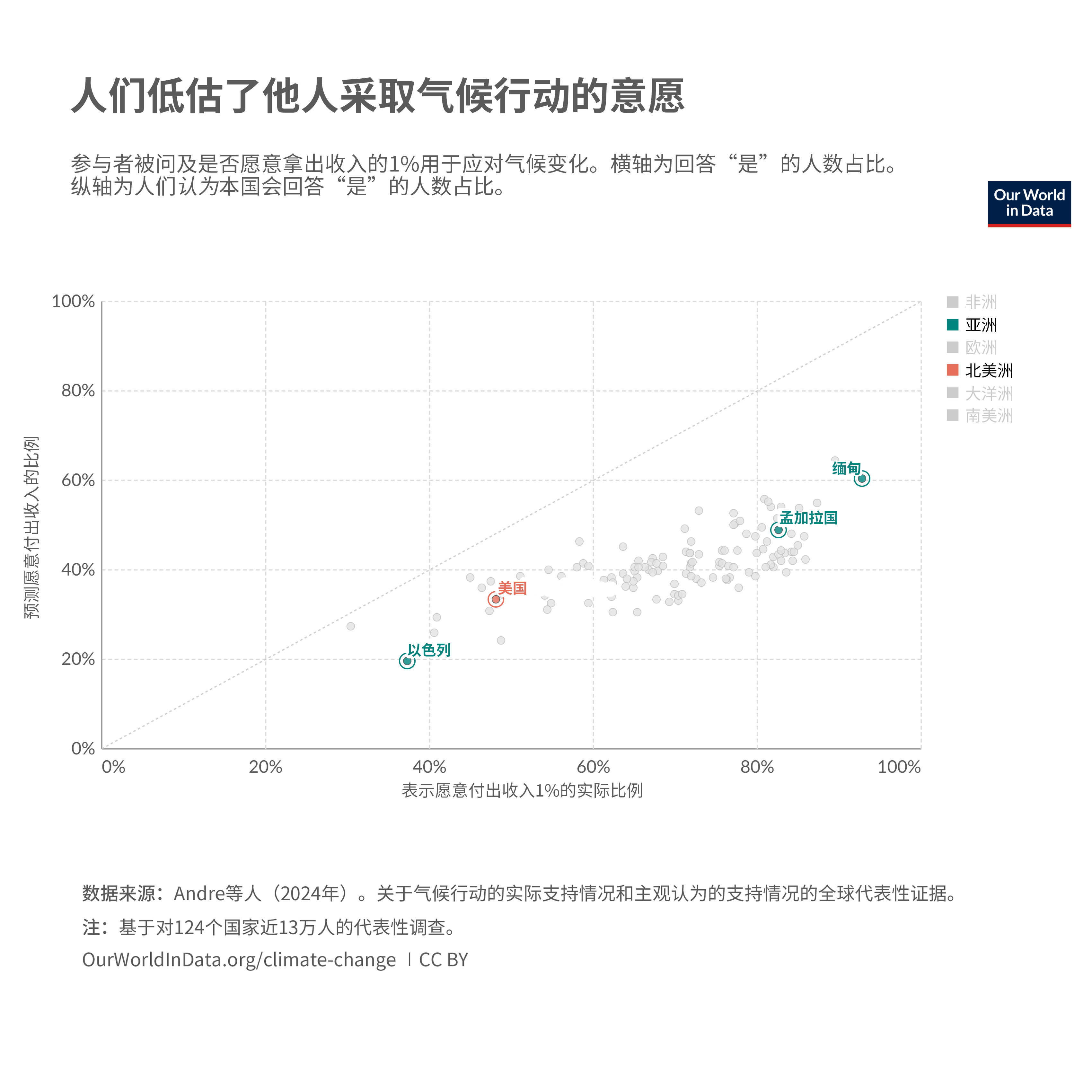 我们在应对气候变化方面的支付意愿因地区而异。Image: Our World in Data
