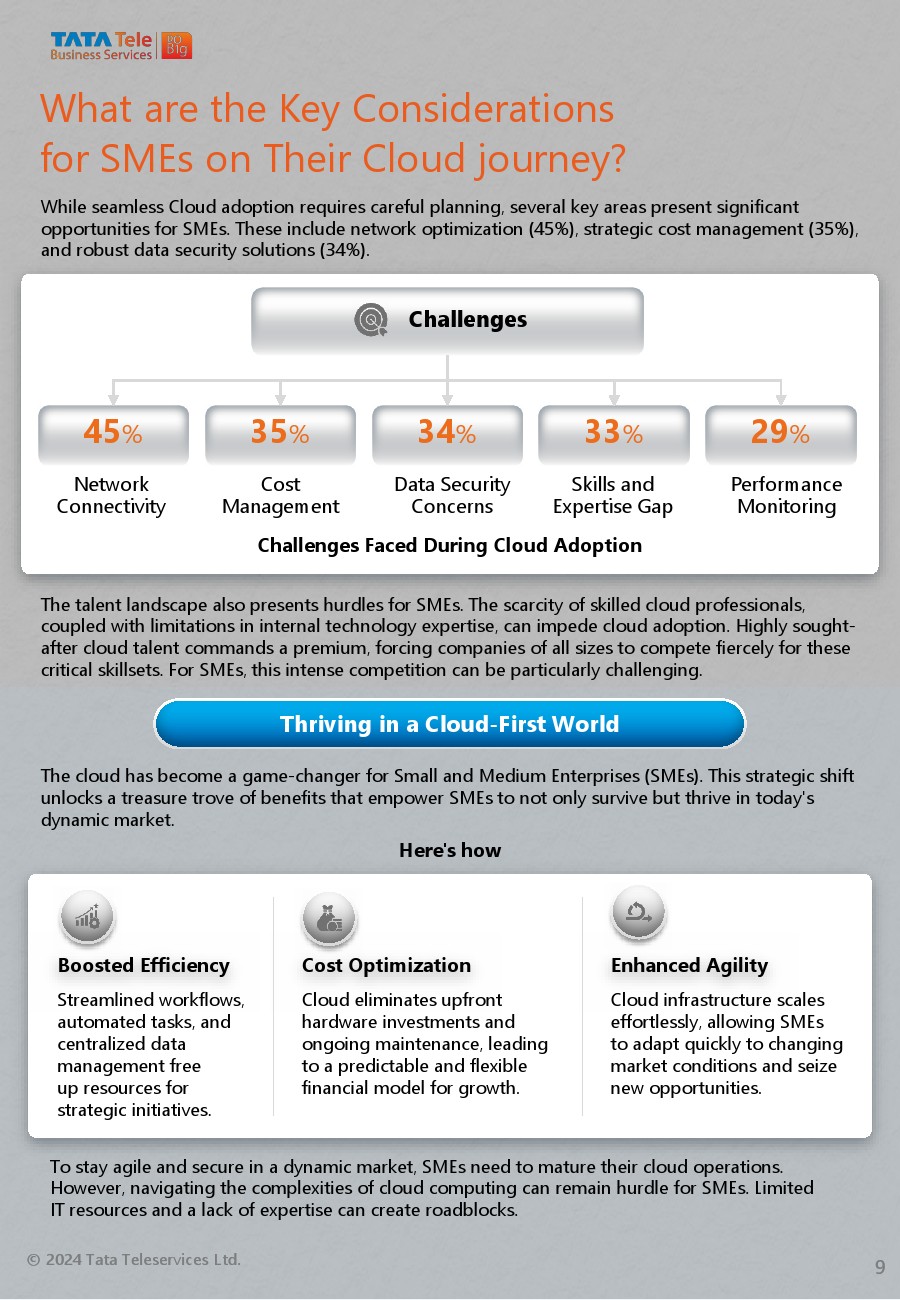 随着越来越多的中小企业认识到云的好处,云的采用正在获得显著的吸引力。超过一半的中小企业(52%)利用了公共云提供的可扩展性和可负担性。近1/5的中小企业(20%)已经成功地将超过50%的工作负载迁移到云端。客户支持(51%)和网络应用(49%)是中小企业在跨行业云迁移中优先考虑的两大应用。