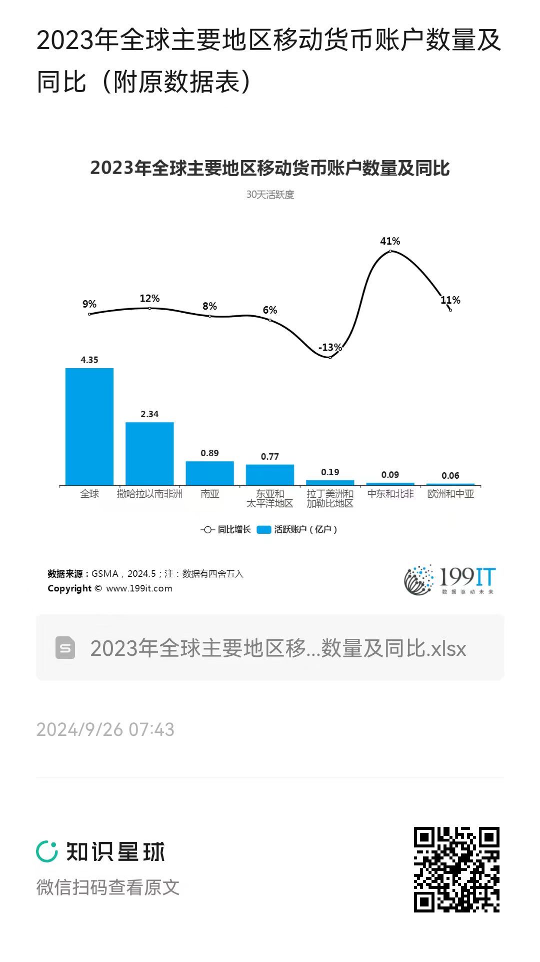 - 2023年非洲主要地区移动货币账户数量及同比(附原数据表)