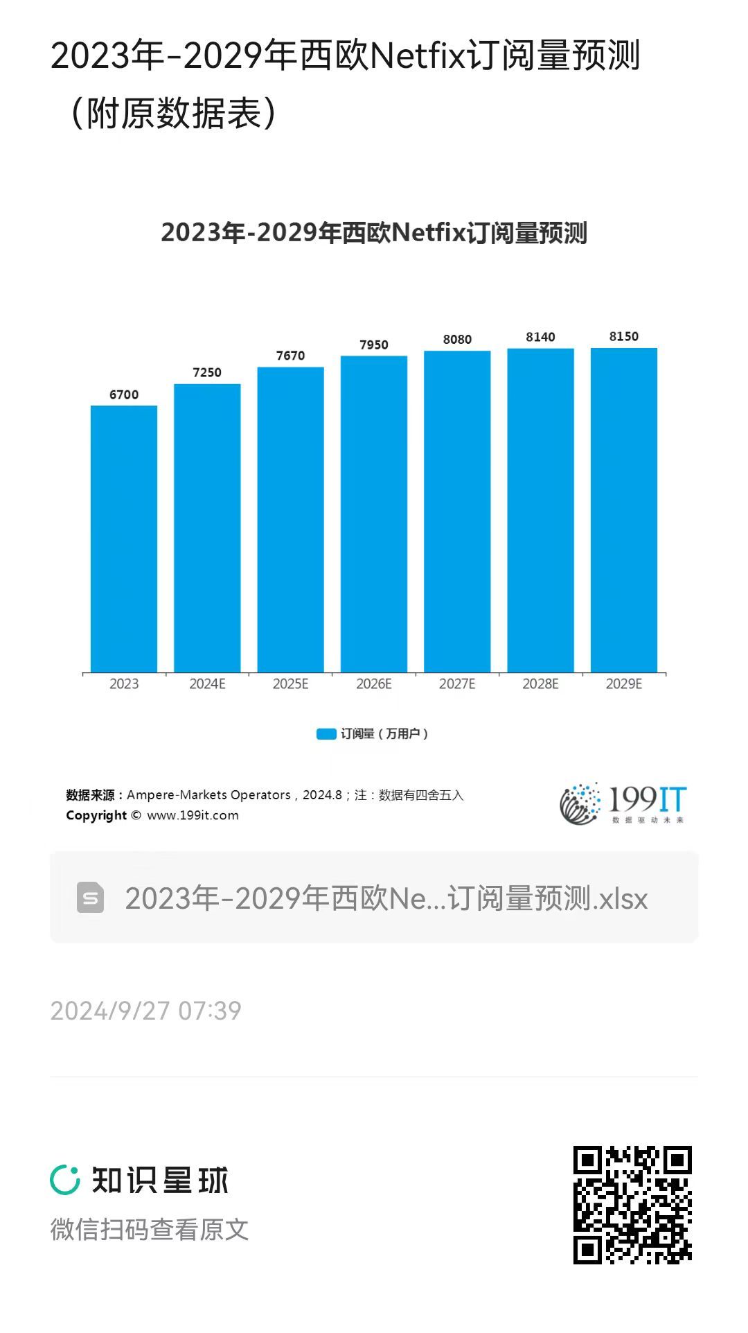 2023年-2029年西欧Netfix订阅量预测(附原数据表) ​​​