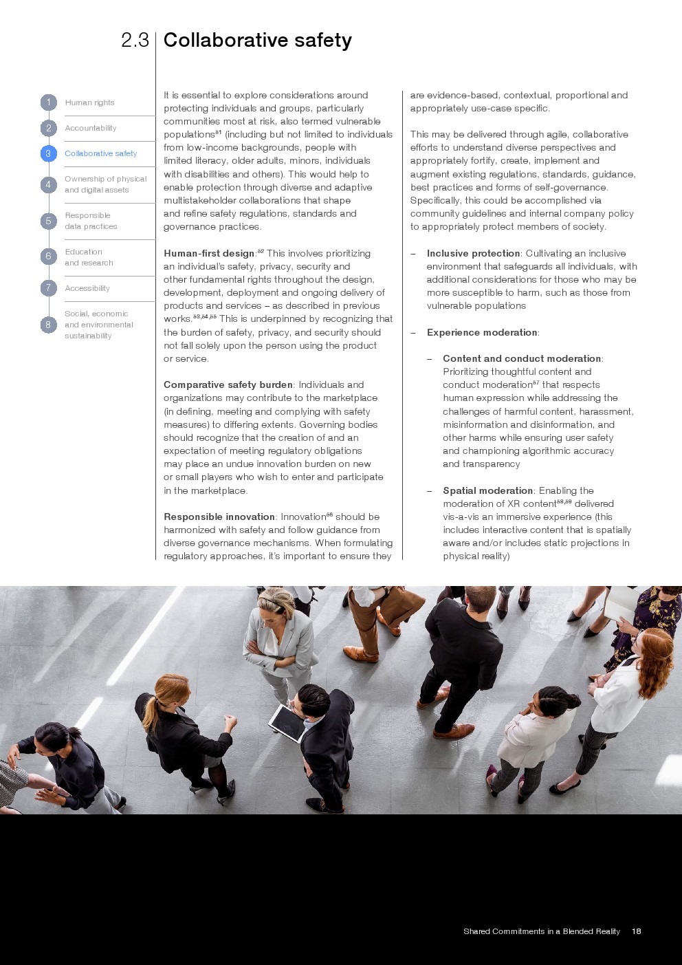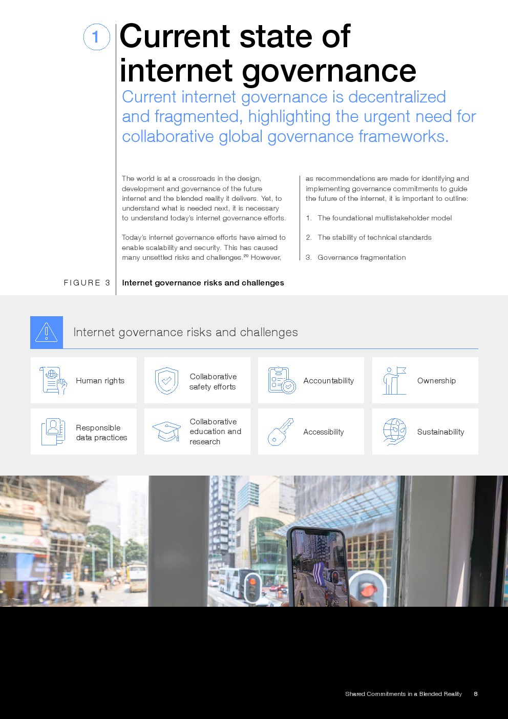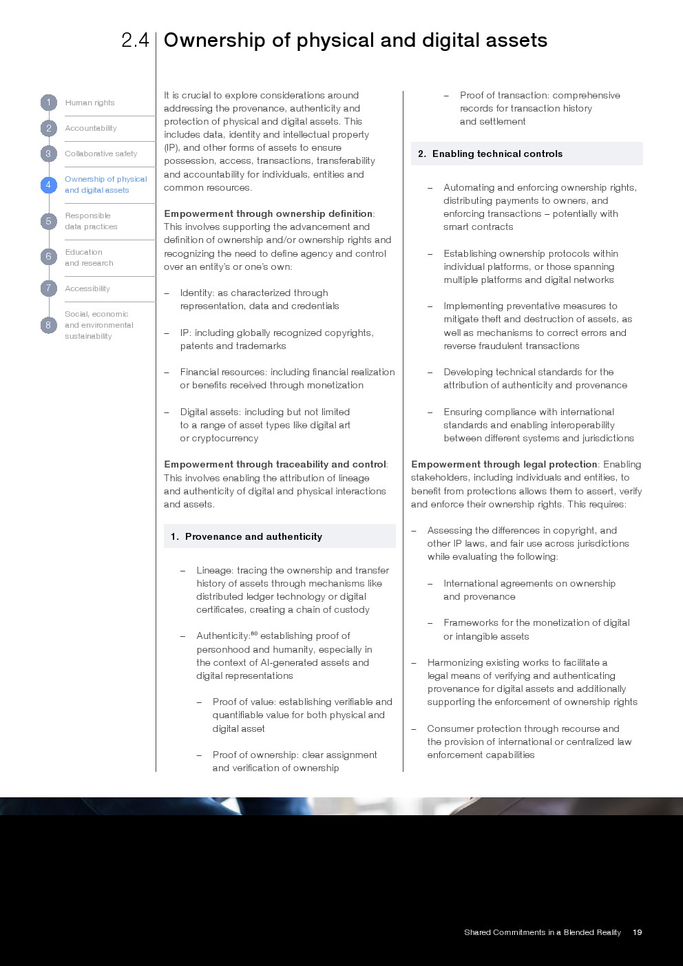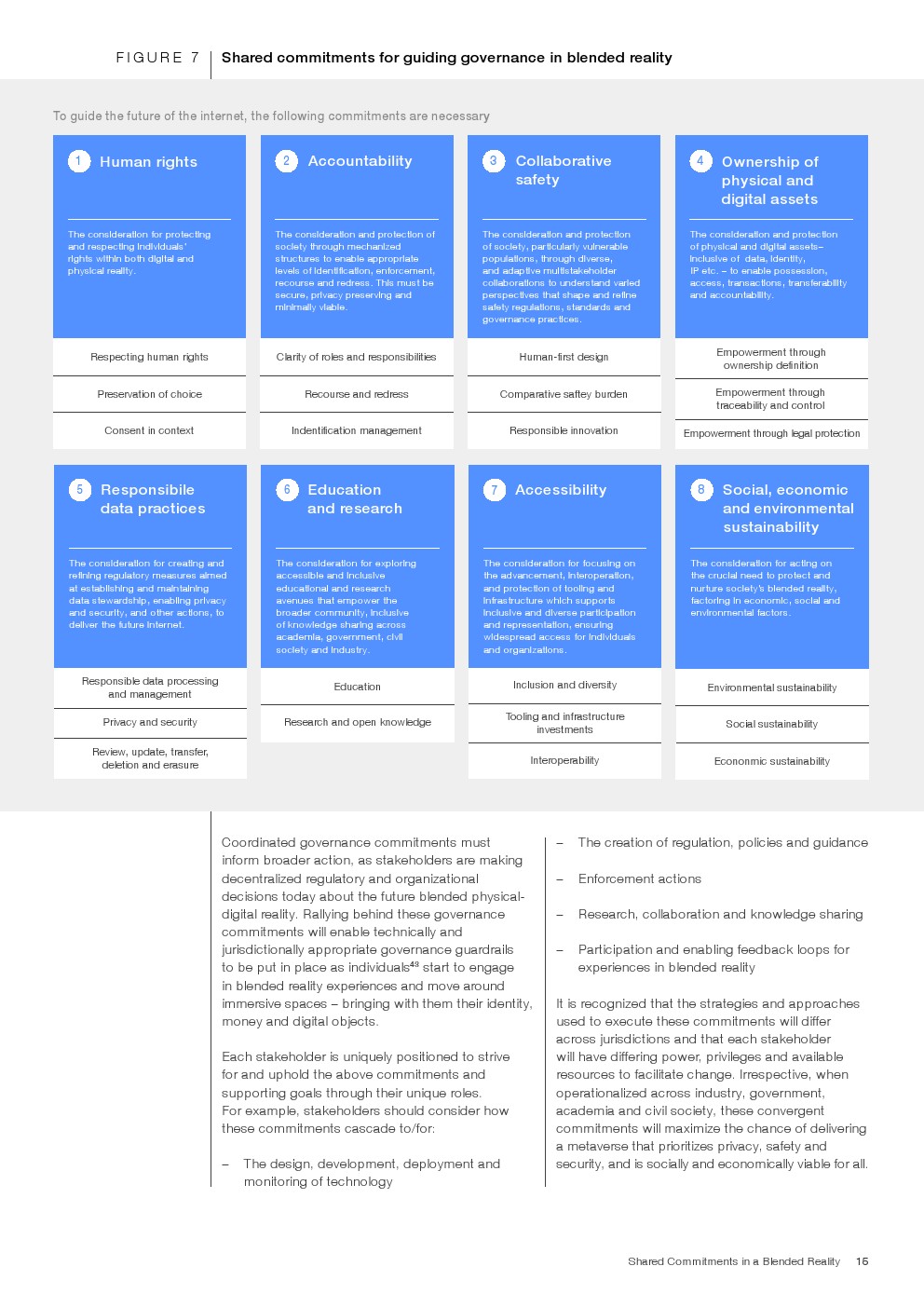 报告提出八项核心治理承诺,涵盖人权、问责、安全、资产所有权、数据治理、教育、可及性及可持续发展。其中,数据治理强调全生命周期管理与隐私安全,资产维度则延伸至数字身份、IP及虚拟资产确权,体现治理对象由“信息”向“价值与权利”的跃迁。