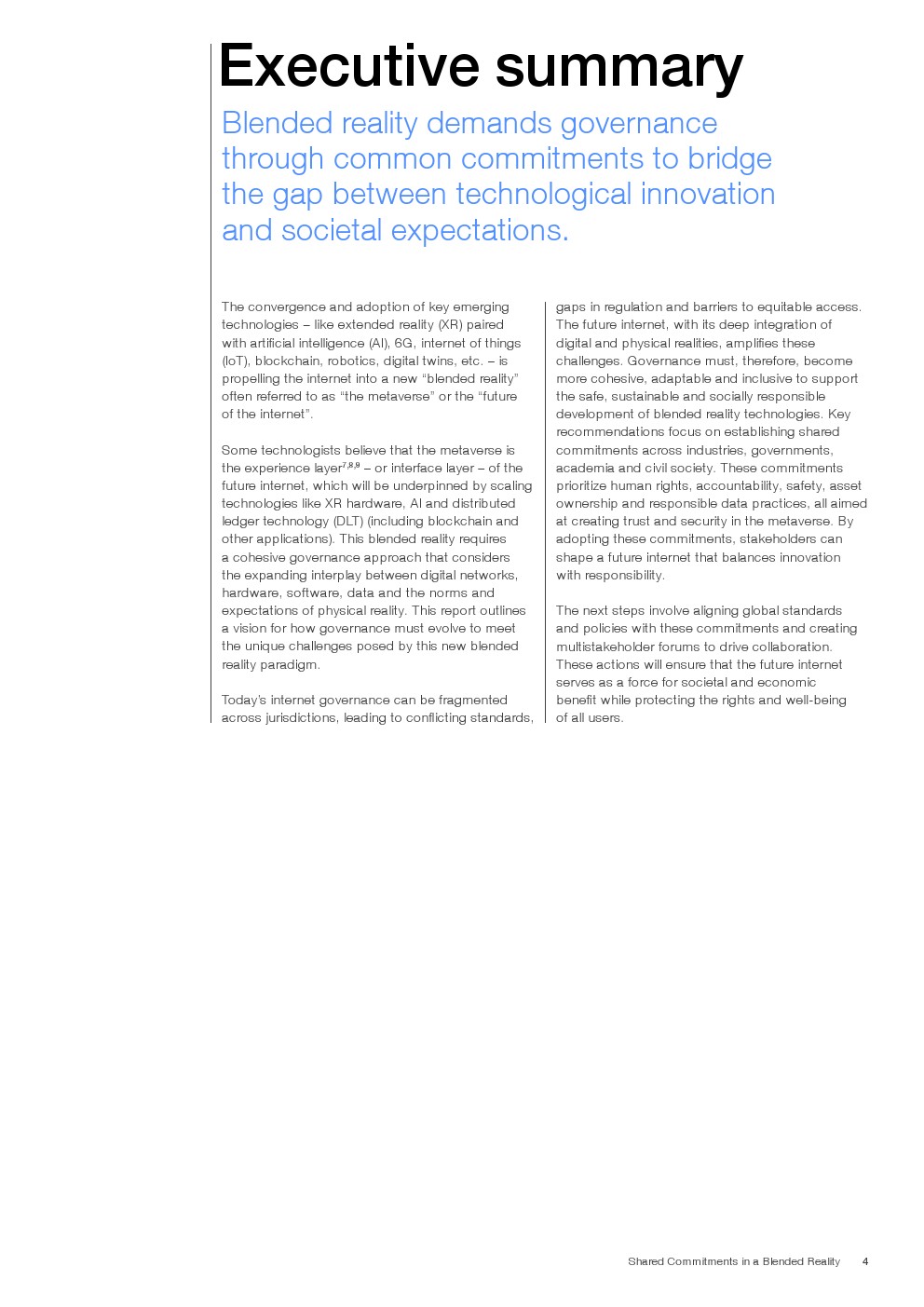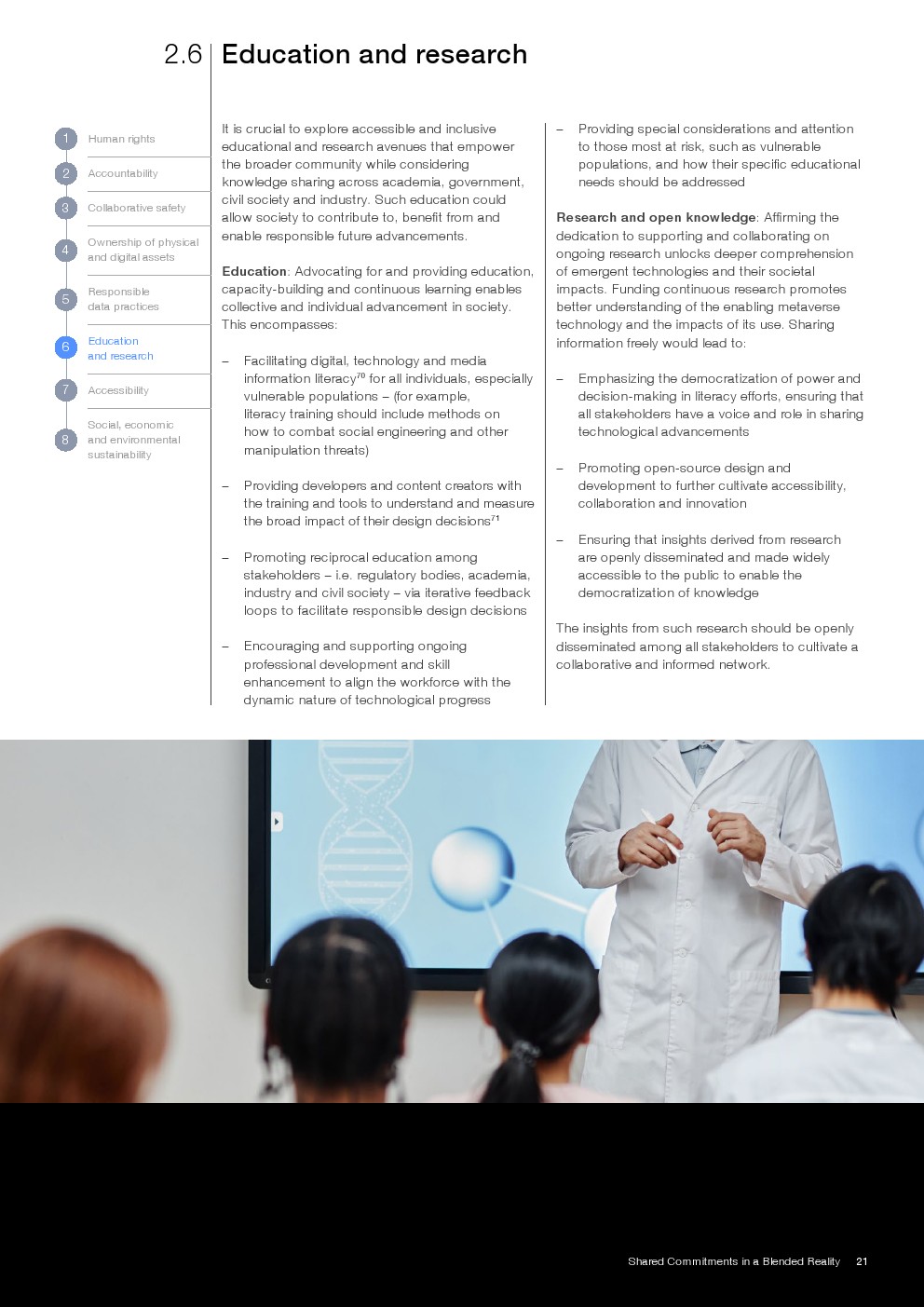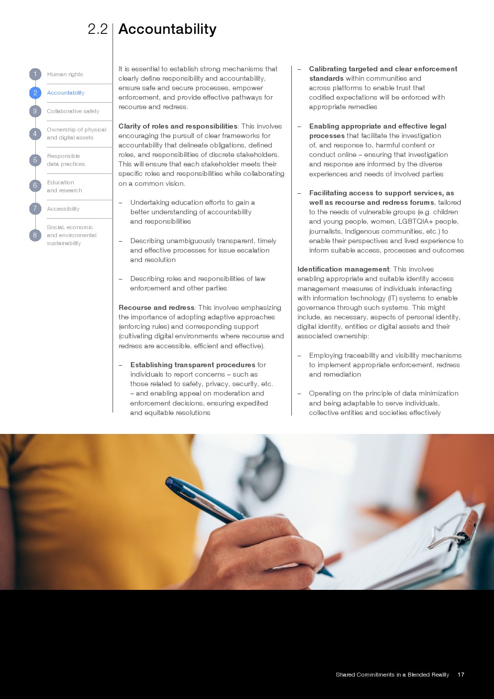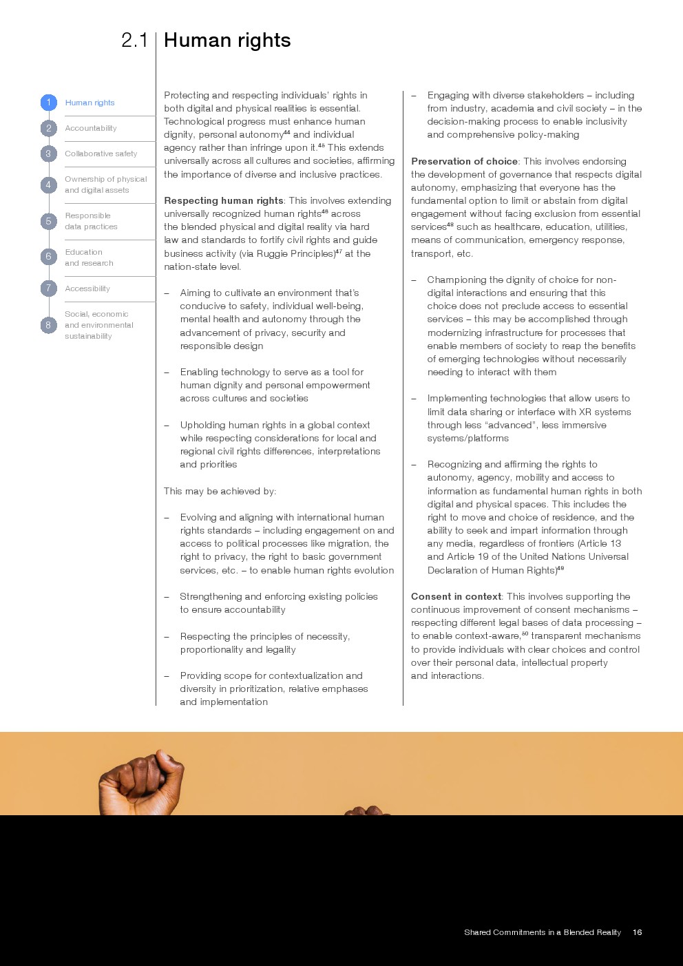 报告提出八项核心治理承诺,涵盖人权、问责、安全、资产所有权、数据治理、教育、可及性及可持续发展。其中,数据治理强调全生命周期管理与隐私安全,资产维度则延伸至数字身份、IP及虚拟资产确权,体现治理对象由“信息”向“价值与权利”的跃迁。