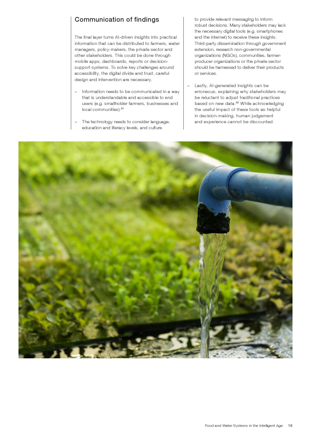 食物-水堆栈框架的成功应用需要一套多样化的数据源-手动或通过遥感和物联网(IoT)等技术捕获-包括宏观层面的信息,如水的可用性,天气预报,盐度水平和土地利用模式。