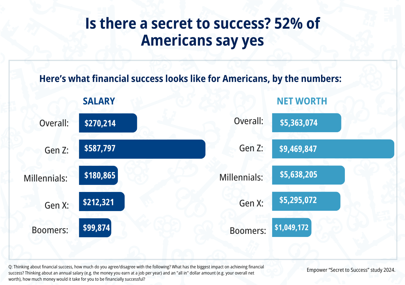 财务成功有什么秘诀吗?大多数美国人(52%)的回答是肯定的,而且被认为成功的平均年薪是27万美元,总资产净值为530万美元。