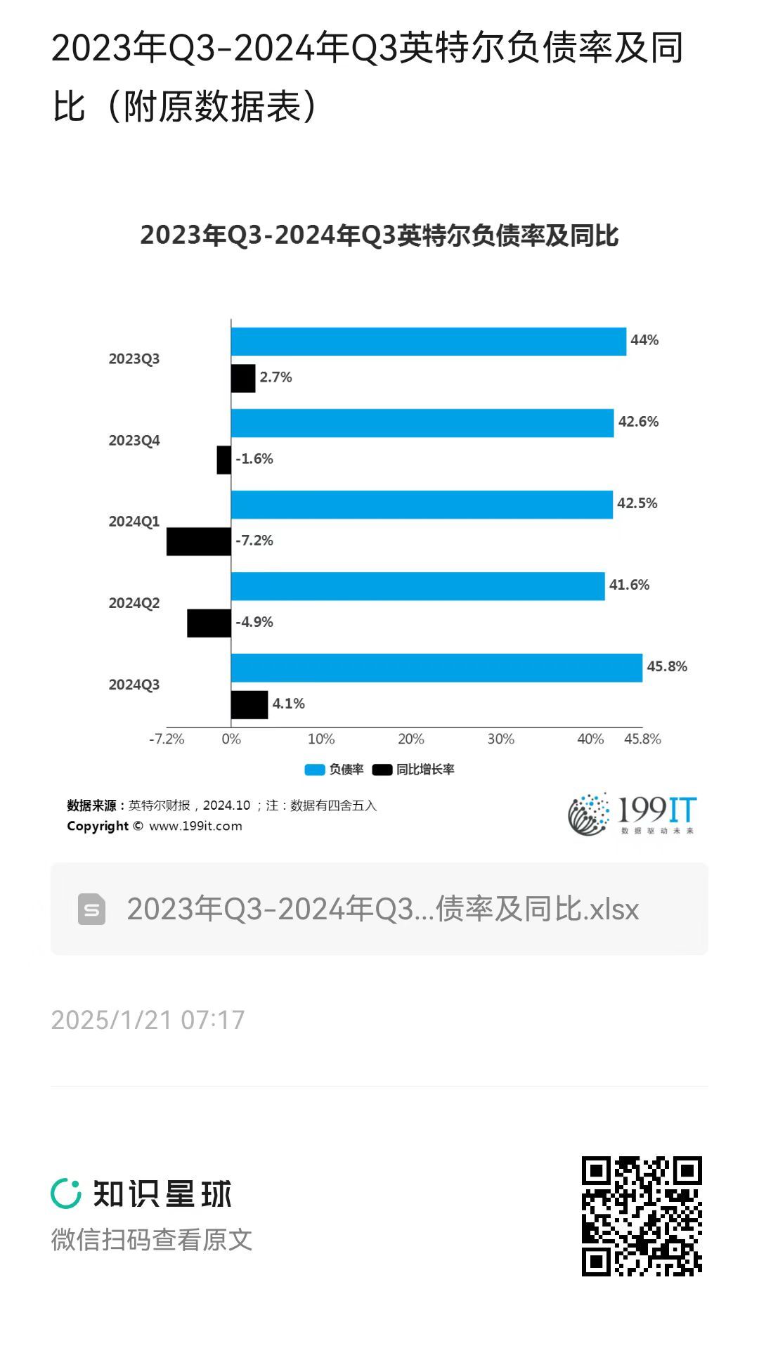 2023年Q3-2024年Q3英特尔负债率及同比(附原数据表) ​​​