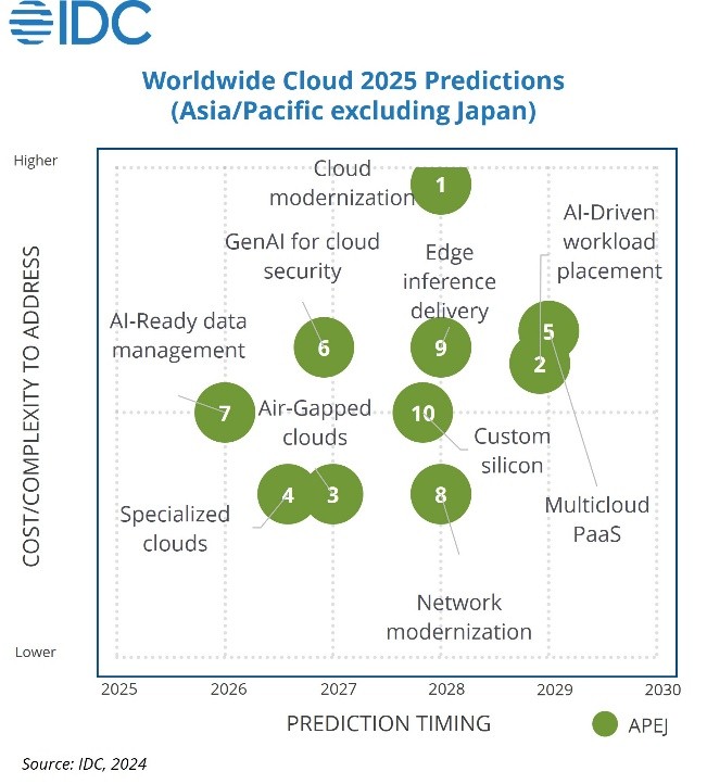 根据IDC最近对亚太地区(不包括日本)云计算2025预测,亚太地区的组织将继续进军云计算,因为他们对传统基础设施的使用在未来两年内继续下降。IDC预测,2027年超过50%的企业将对其云架构进行现代化改造,以提高效率和推动创新。