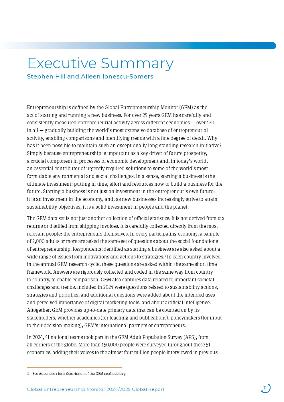 25年来,GEM持续且细致地测量了全球120多个经济体的创业活动,逐步建立了世界上最广泛的创业活动数据库,使跨经济体的比较和趋势识别成为可能。简而言之,创业是未来繁荣的关键动力,是经济发展过程中的重要组成部分,并且在当今世界,创业为解决一些全球最严峻的环境和社会挑战提供了急需的解决方案。从某种意义上说,创业是一种终极投资:投入时间、精力和资源以构建未来的企业。创业不仅是对创业者自身未来的投资,也是对经济的投资;随着新企业越来越多地致力于实现可持续发展目标,它也是对人和地球的坚实投资。