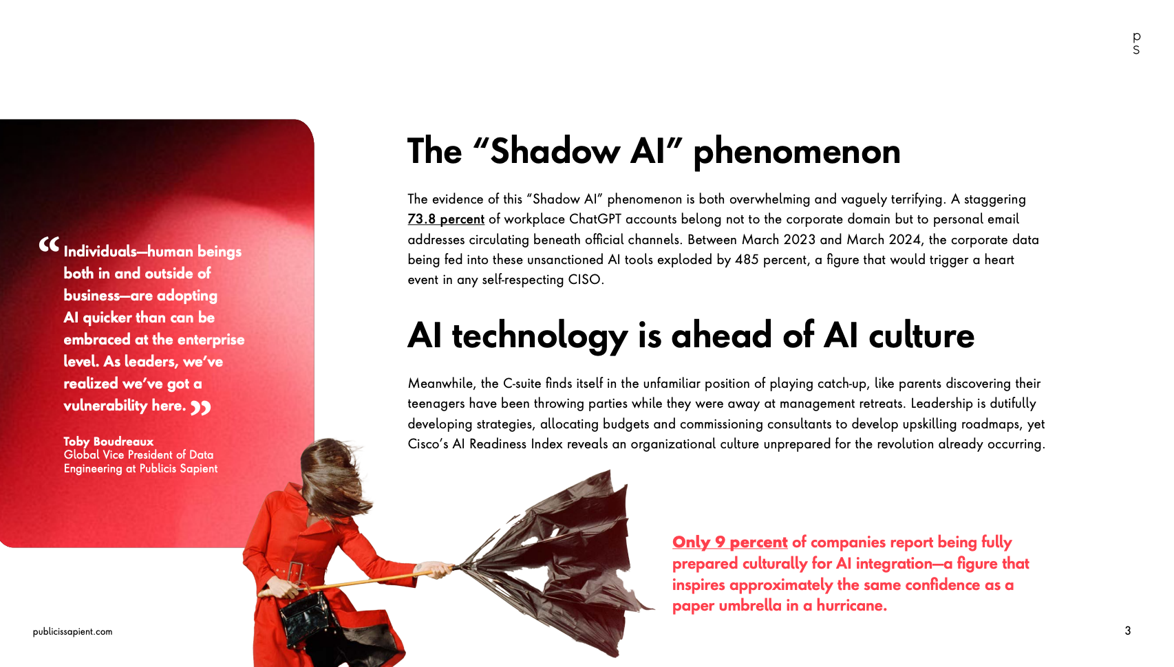 企业AI转型呈现显著的逆向动态。员工层面通过个人工具对AI技术的采纳速度已超越企业官方部署,形成“影子AI”现象。这种自下而上的变革模式,对传统由高层主导的技术推行策略构成根本性挑战,迫使管理层重新审视其变革管理框架。