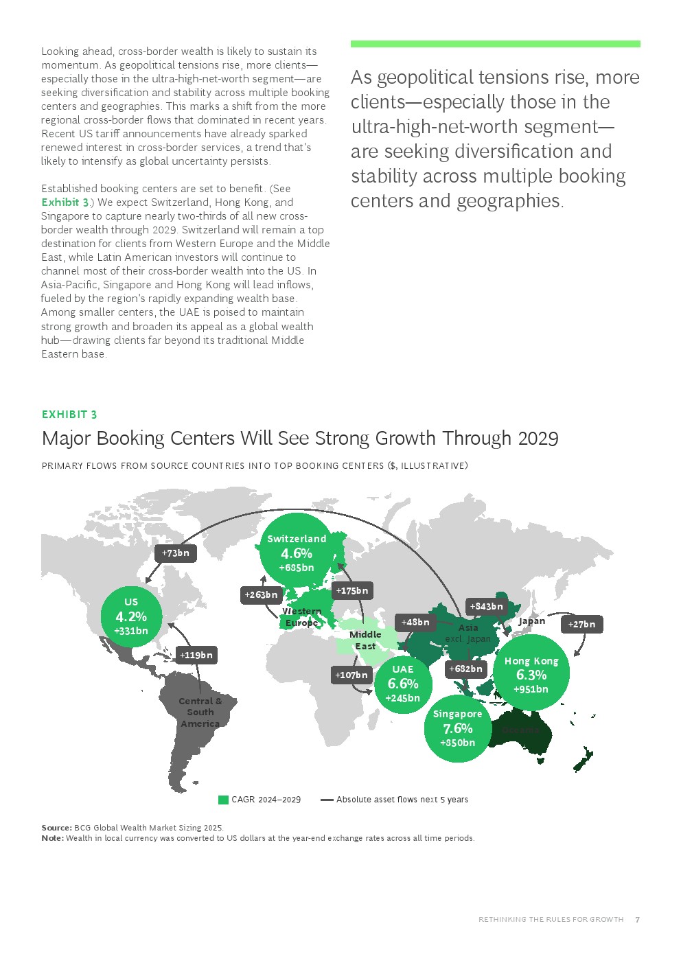 • 跨境财富规模激增8.7%,达到14.4万亿美元,因地缘分散化和避险需求增长,增速较前四年平均6.3%明显加快。新加坡(11.9%)和阿联酋(11.1%)成为突出财富管理中心