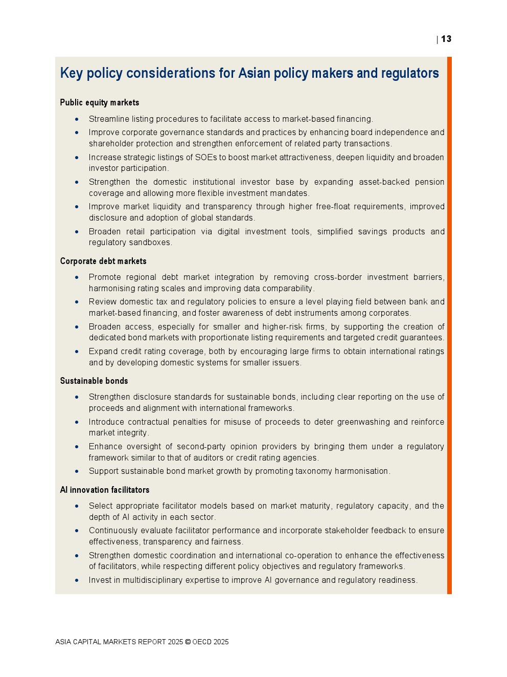资本市场能够通过从广泛多元的投资者群体中调动大规模资金来为创新提供融资,因此特别适合支持雄心勃勃的创新驱动型企业。它们还提供了开发新兴技术所需的风险资本。市场融资水平较高的亚洲经济体在创新方面更为成功。