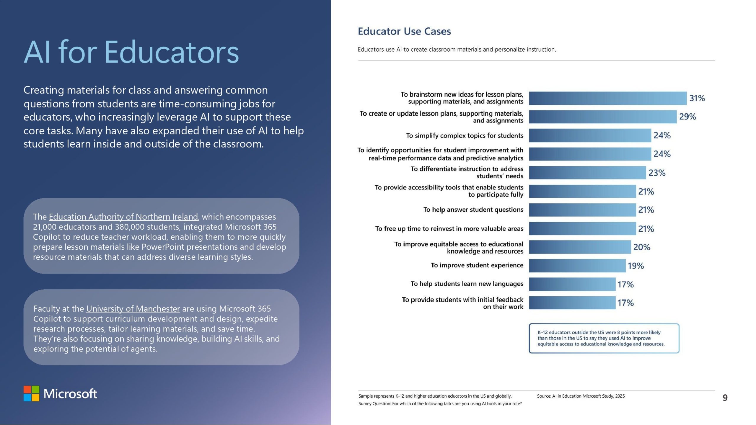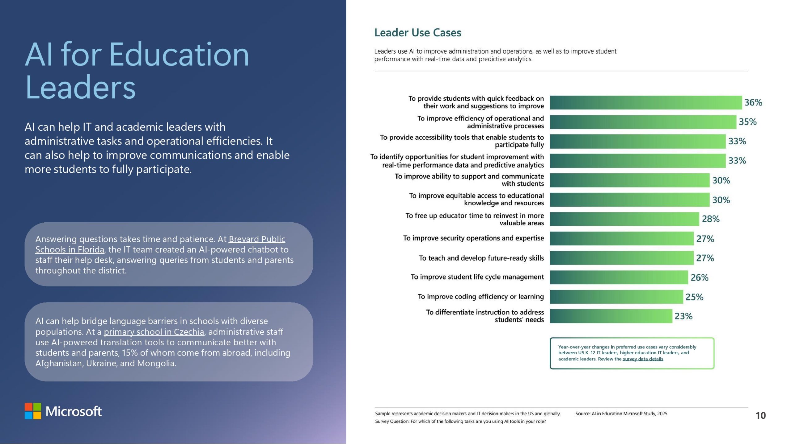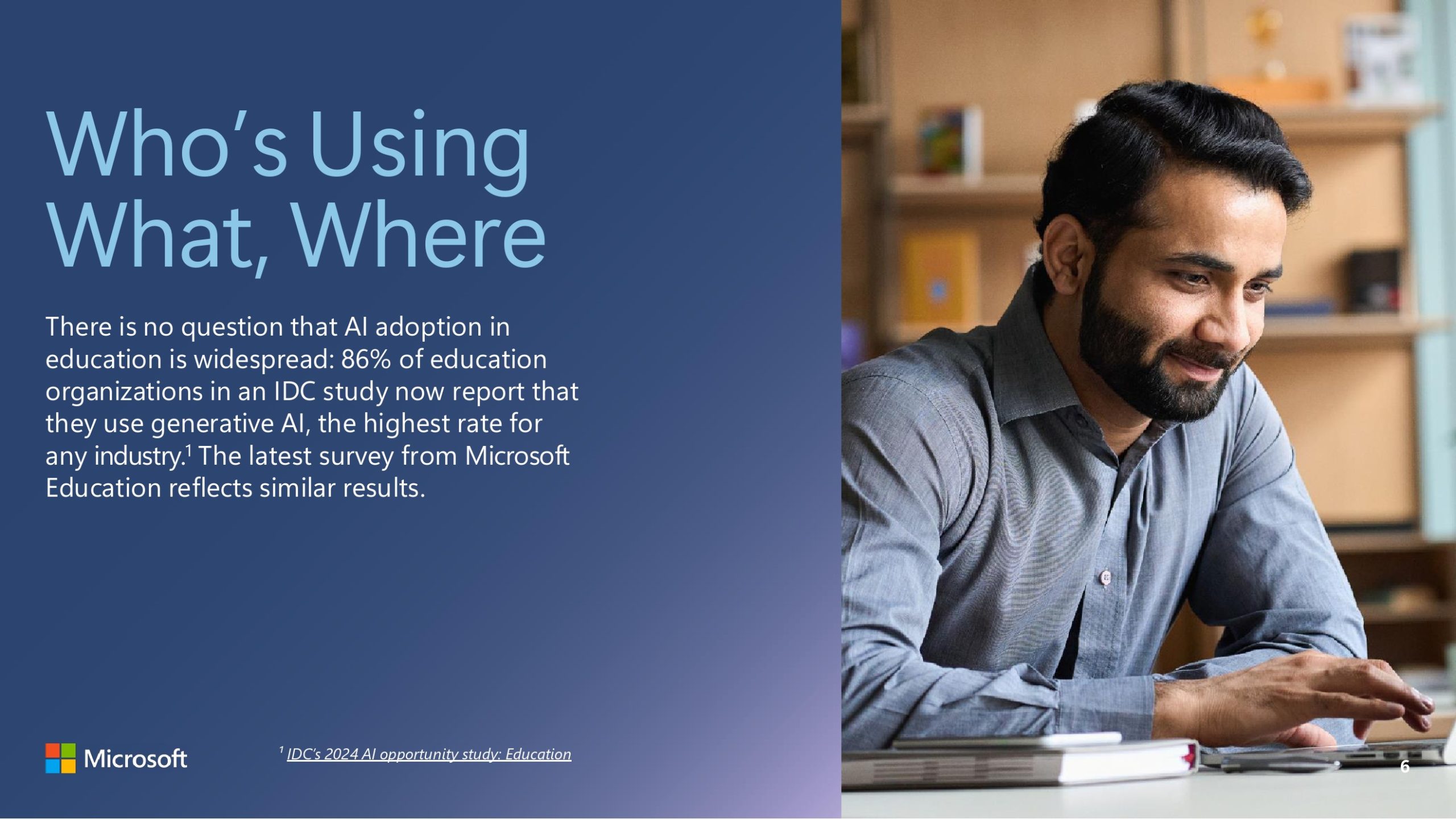 毫无疑问,人工智能在教育行业的应用十分广泛:IDC 的一项研究显示,86% 的教育机构目前正在使用生成式 AI,这是所有行业中最高的采用率。微软教育的最新调查也反映了类似的结果。