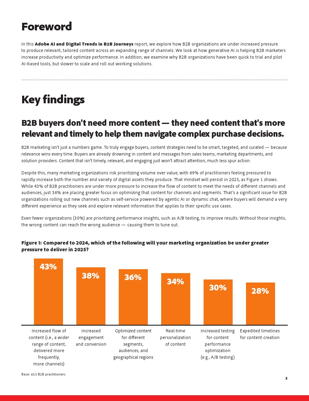 研究显示,B2B营销正在进入一个高度紧张却方向未明的阶段。69%的B2B从业者感受到持续增加内容数量和类型的压力,43%的机构在2025年被要求提升内容投放频率与渠道覆盖,但真正将重点放在内容优化上的仅有36%。数据揭示出一个核心矛盾,即内容生产能力在扩张,但内容价值与相关性并未同步提升,买方正在被大量低相关信息淹没。