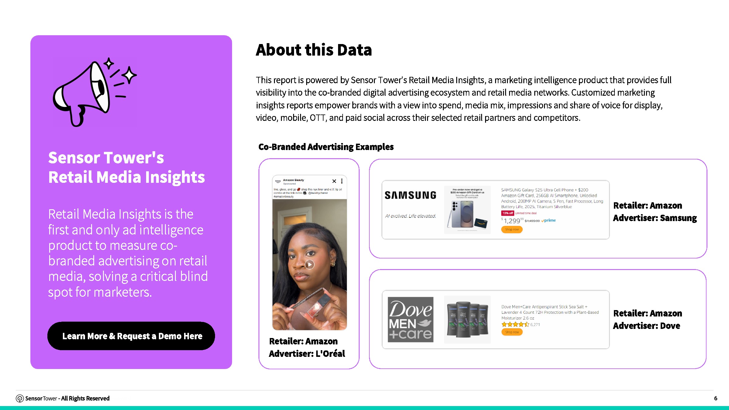 零售媒体网络(RMNs)已成为数字广告行业日益重要的力量,Sensor Tower的零售媒体洞察提供了首个且唯一能衡量顶级零售媒体渠道联合品牌广告的广告情报解决方案。