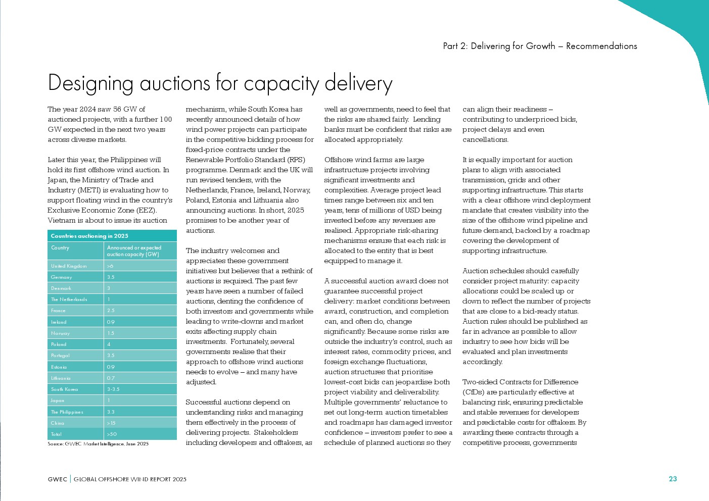 与许多基础设施部门和其他能源一样,海上风电一直在应对乌克兰战争的长期影响以及相关的宏观经济因素,这些因素提高了利率和资本成本。尽管各国政府设定了宏伟目标,但可靠的项目储备一直不稳定且不确定,导致缺乏有效的投资信号。长期存在的问题,如审批缓慢、成熟市场拍卖设计不佳以及一些市场政策不稳定性增加,加剧了这种影响,并导致了一个转折点。