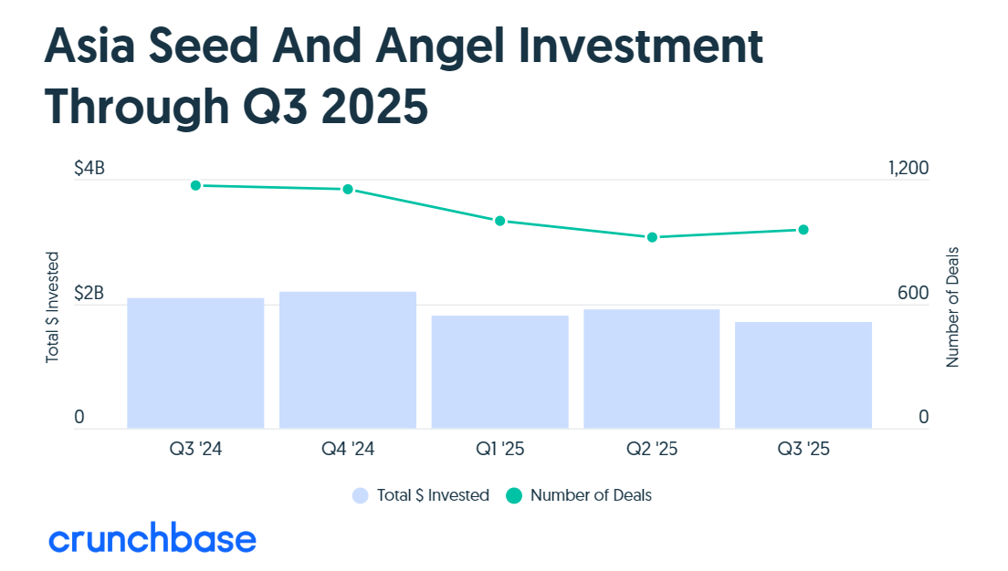 与此同时,种子期投资在第三季度似乎有所下降。然而,预计这些数字会随着时间的推移而有所上升,因为该阶段的交易通常在完成数周或数月后才被记录到数据集中。
