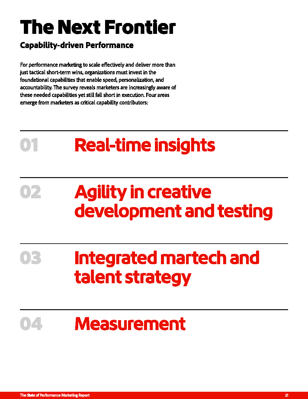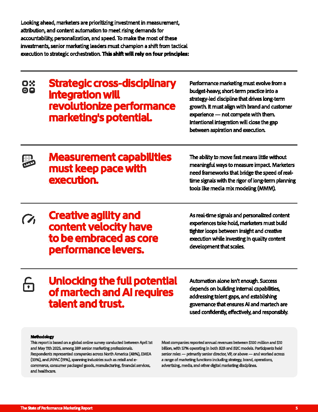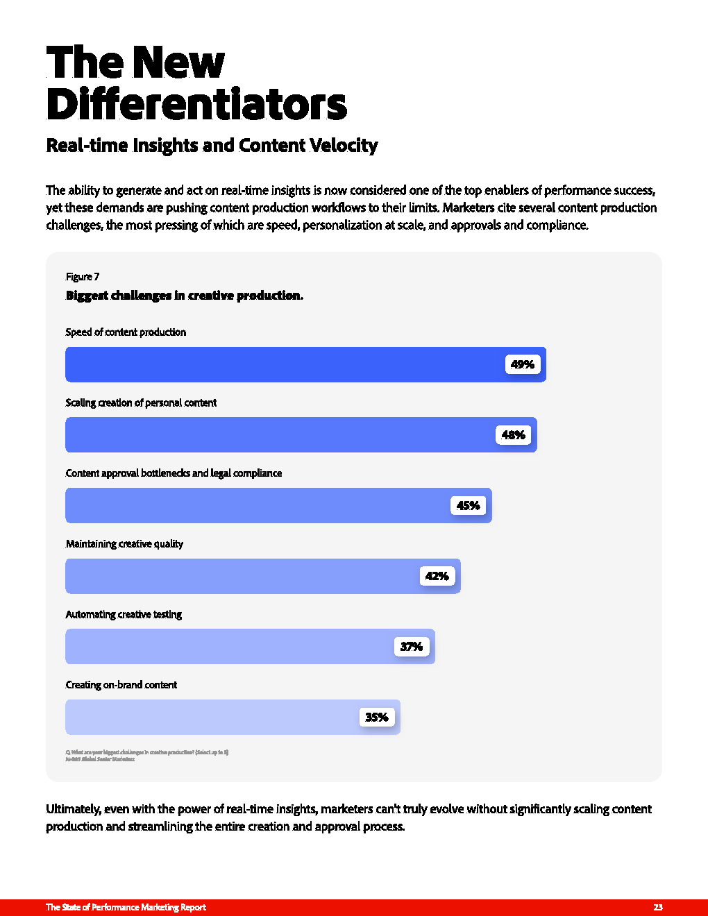 与此同时,内容能力正成为新的增长瓶颈。49%的企业面临内容生产速度不足,48%难以实现个性化规模化,45%受制于审批与合规流程。这意味着,即便数据与洞察具备,若内容供给无法匹配,绩效营销仍难以转化为实际增长动能。
