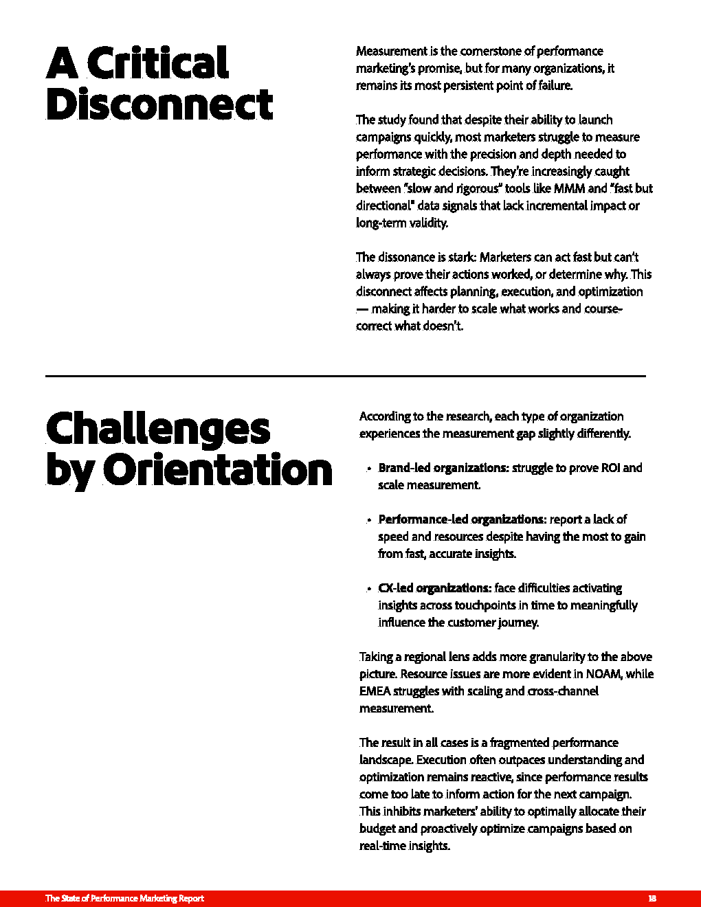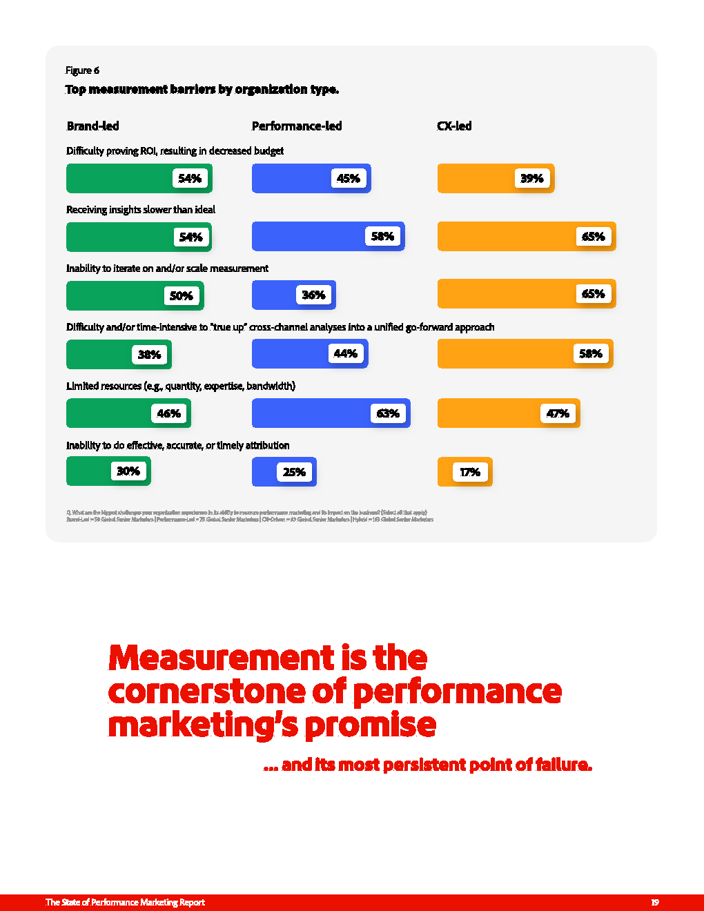 衡量体系的滞后进一步放大上述问题。品牌导向企业中54%难以证明ROI,绩效导向企业中58%受制于洞察滞后,而CX导向企业中65%无法实现数据的实时激活。这种“执行速度快于认知速度”的断裂,使营销优化更多依赖经验而非证据,直接削弱预算配置效率与策略迭代能力。