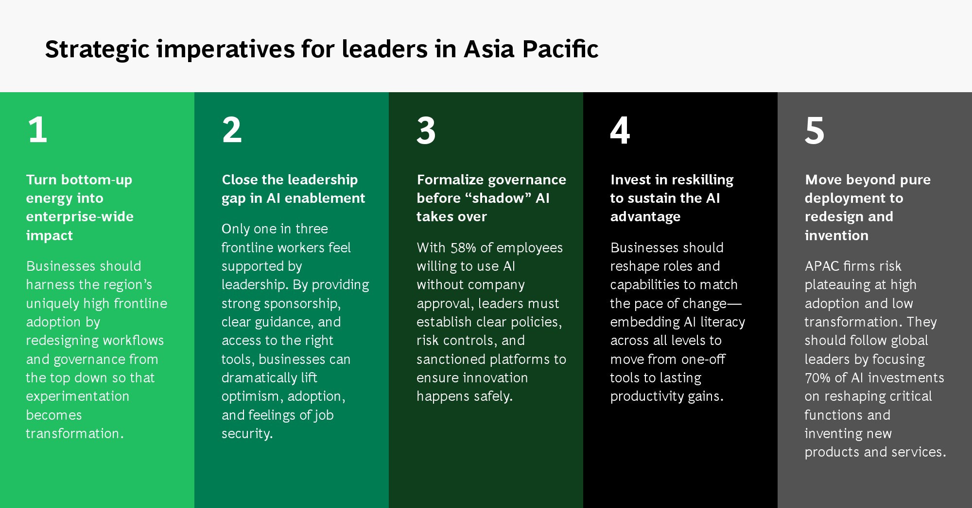 整体来看,亚太地区正站在从“应用领先”迈向“价值领先”的临界点。短期内,AI将持续释放个体生产率红利;但中长期竞争,将取决于企业是否能够将AI嵌入核心流程、重构组织形态并完善治理体系。若亚太企业能够从“工具部署”转向“系统重构”,并同步推进人才再培训与制度建设,其领先优势有望从规模扩散升级为结构性优势。