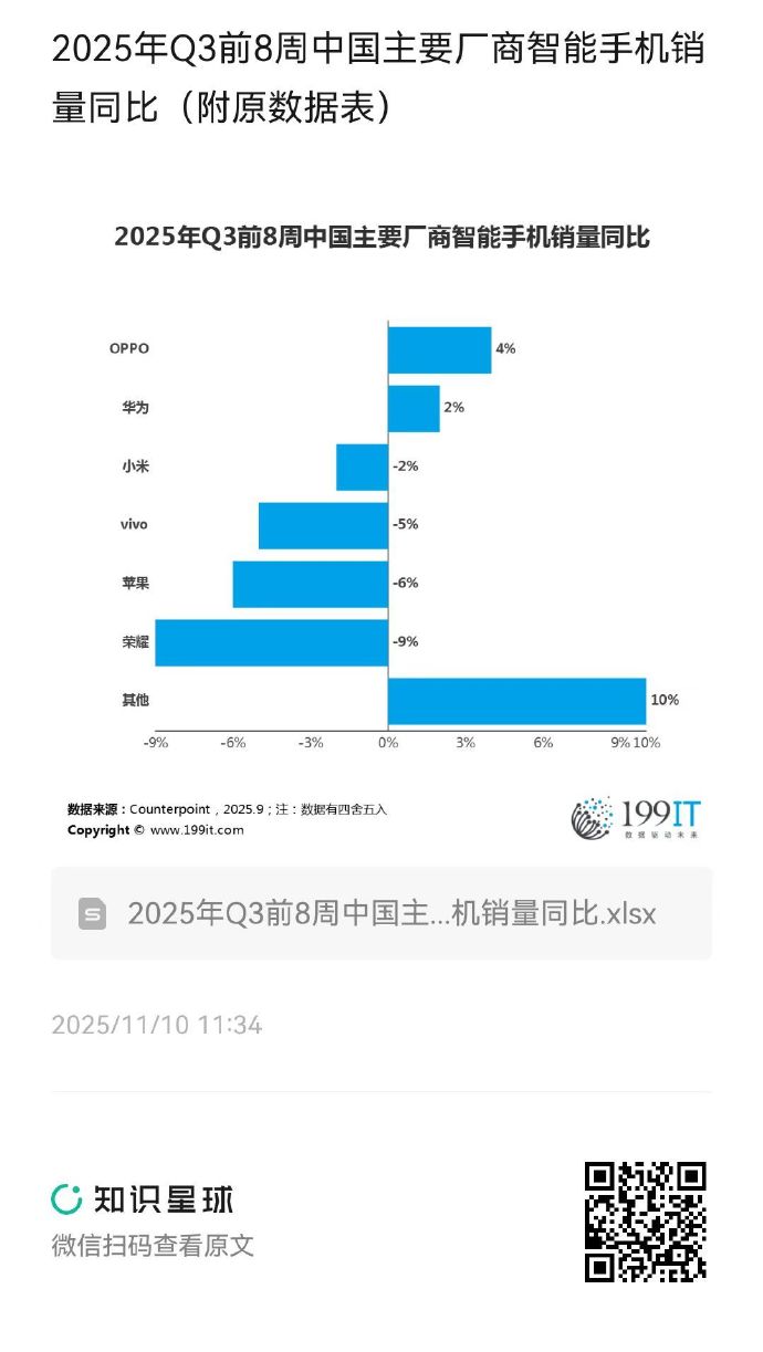 - 2025年Q2全球主要厂商智能手机出货量市场份额(附原数据表)
