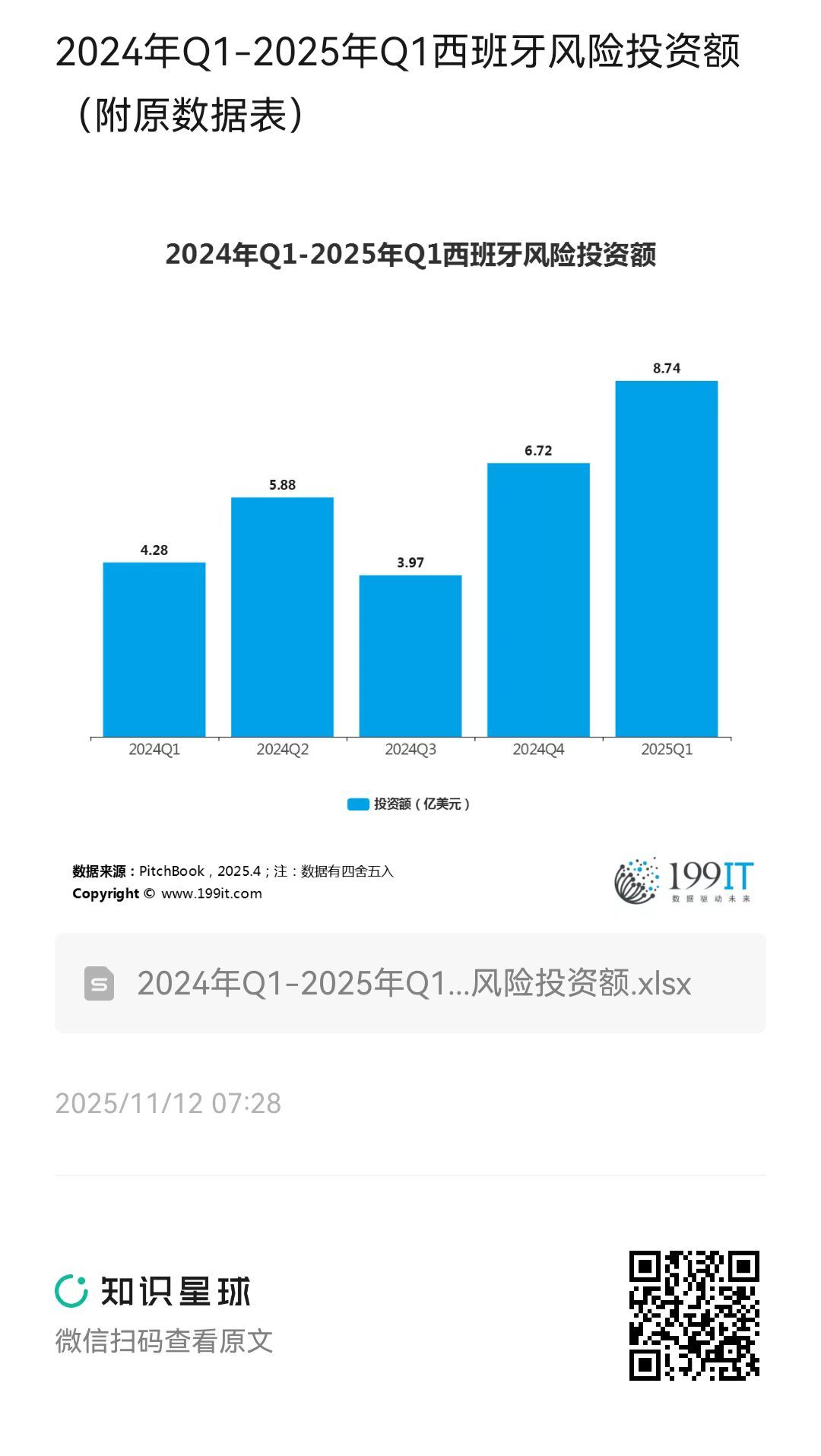 2024年Q1-2025年Q1西班牙风险投资额(附原数据表) ​​​