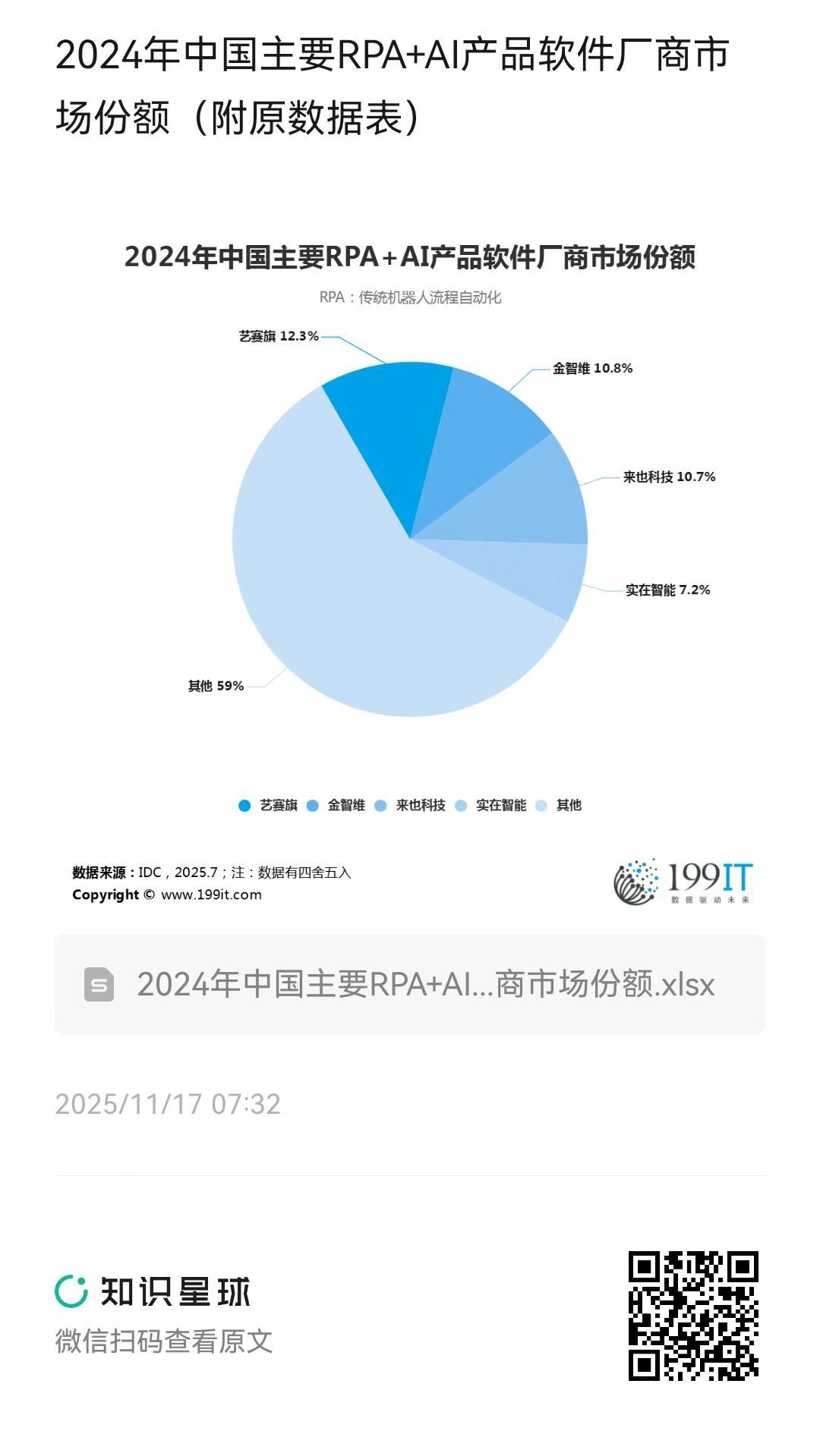 2024年中国主要RPA+AI产品软件厂商市场份额(附原数据表) ​​​