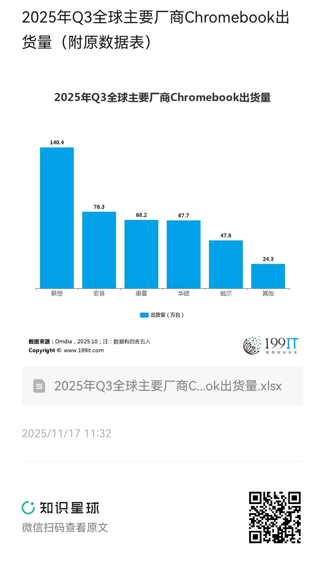 2025年Q3全球主要厂商Chromebook出货量(附原数据表) ​​​