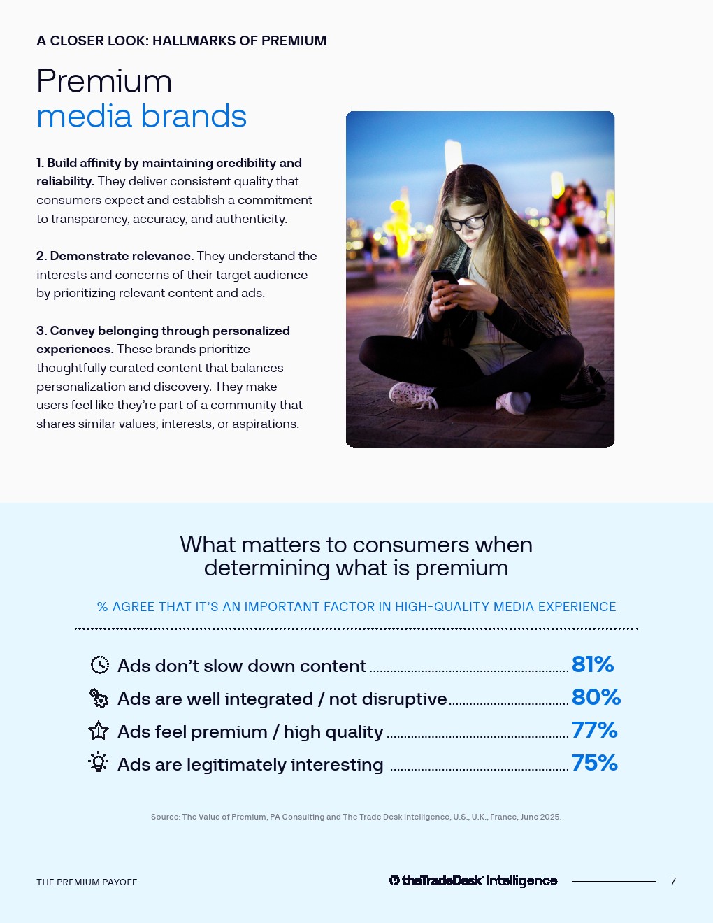 研究还发现,广告体验本身已成为判断媒体质量的重要变量。57%的受访者认为广告相关因素是决定媒体是否优质的核心驱动,这意味着广告形式、加载速度、内容相关性与视觉质量都会直接影响媒体价值。相比之下,信息流拥挤、广告干扰严重的社交媒体平台更容易削弱“优质感”。