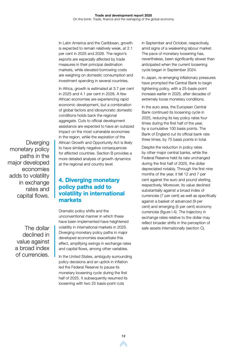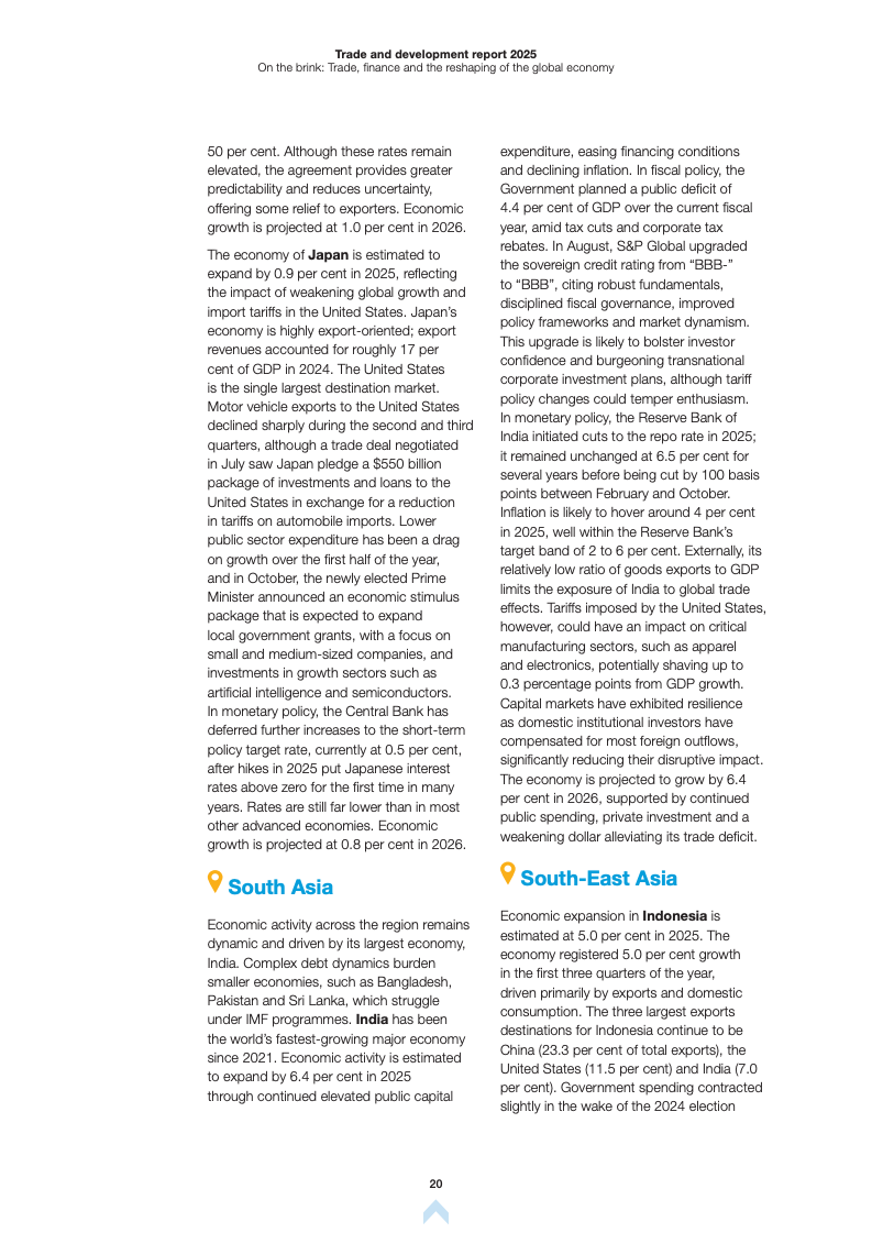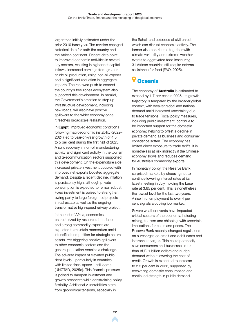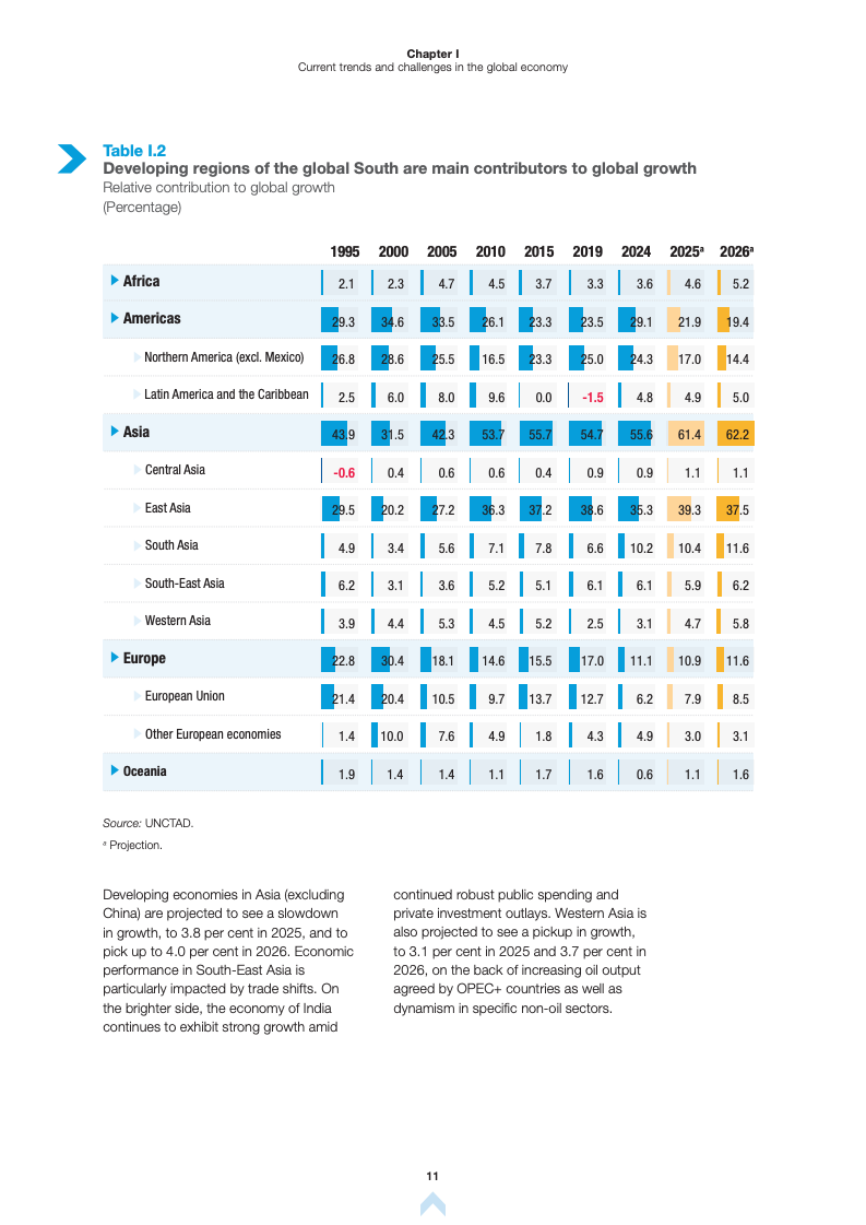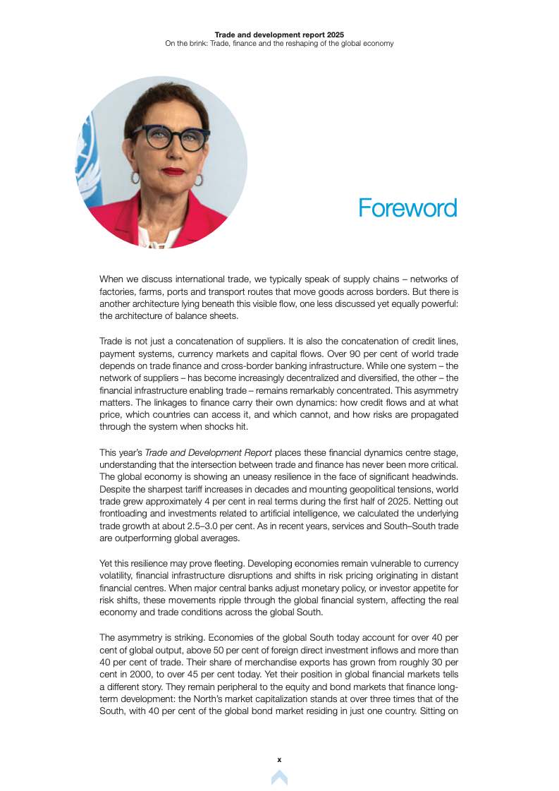 2025年贸易和发展报告揭示了全球经济增长动能的显著衰退,预计2025年全球GDP增速将从2024年的2.9%下滑至2.6%。尽管短期内因关税避险导致贸易额短暂冲高至4%,但受制于紧缩的金融环境,全球贸易的基础增长率预计将长期徘徊在2.5%至3%的低位区间。