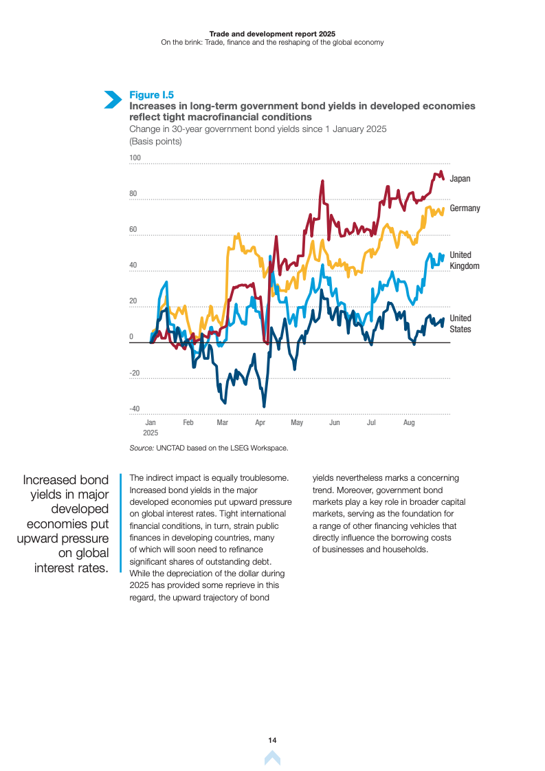 全球南方国家在实体经济与金融话语权上呈现严重倒挂,其贡献了全球逾40%的产出和半数投资,但除去中国外,仅掌握全球12%的股票市值和6%的债券份额。融资成本的剪刀差正在扩大,发展中经济体的借贷利率普遍高达7%至11%,而发达经济体仅为1%至4%,这种资本成本劣势严重侵蚀了新兴市场的增长红利。