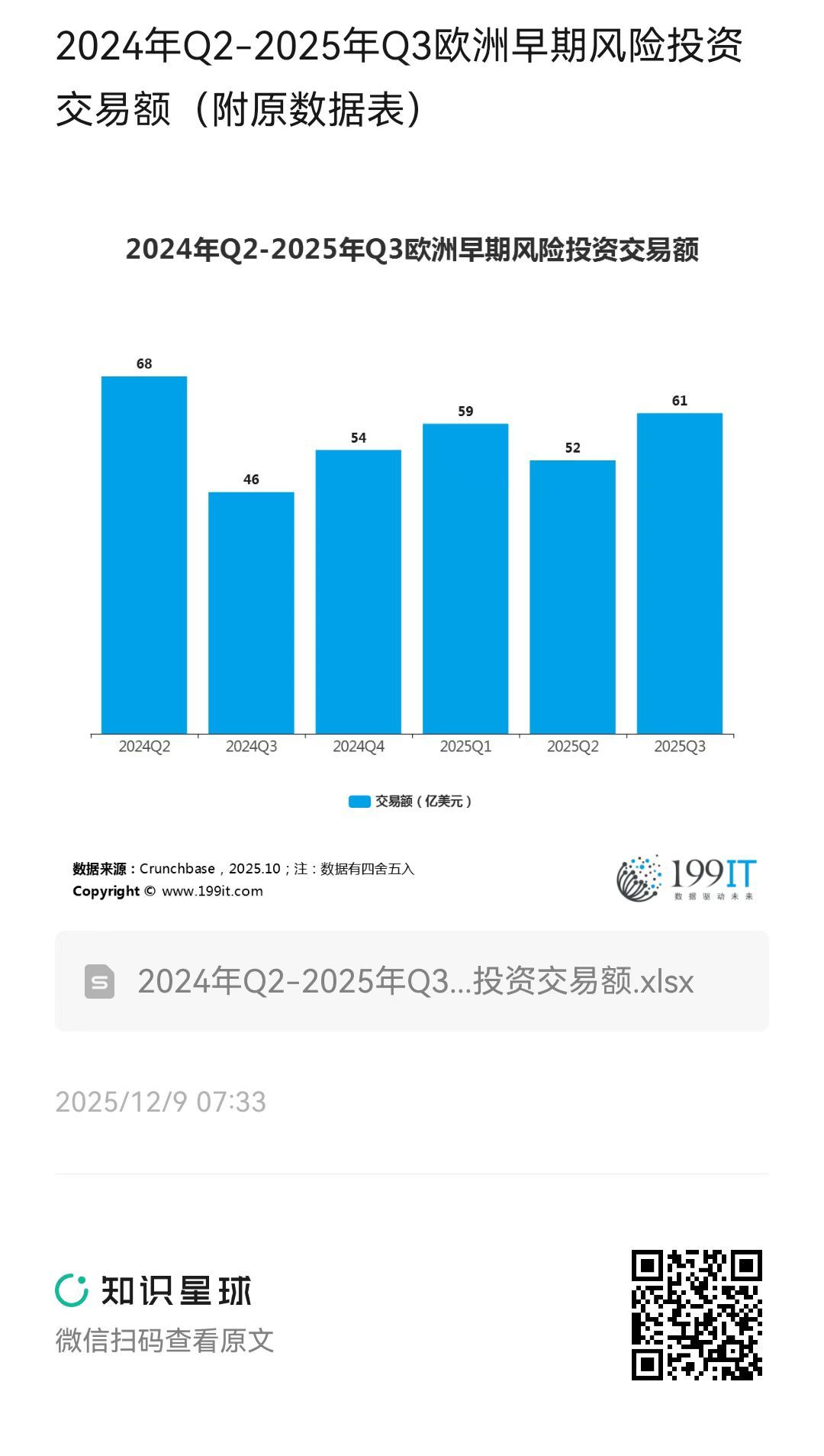- 2021年Q1-2022年Q3欧洲早期风险投资交易额(附原数据表)