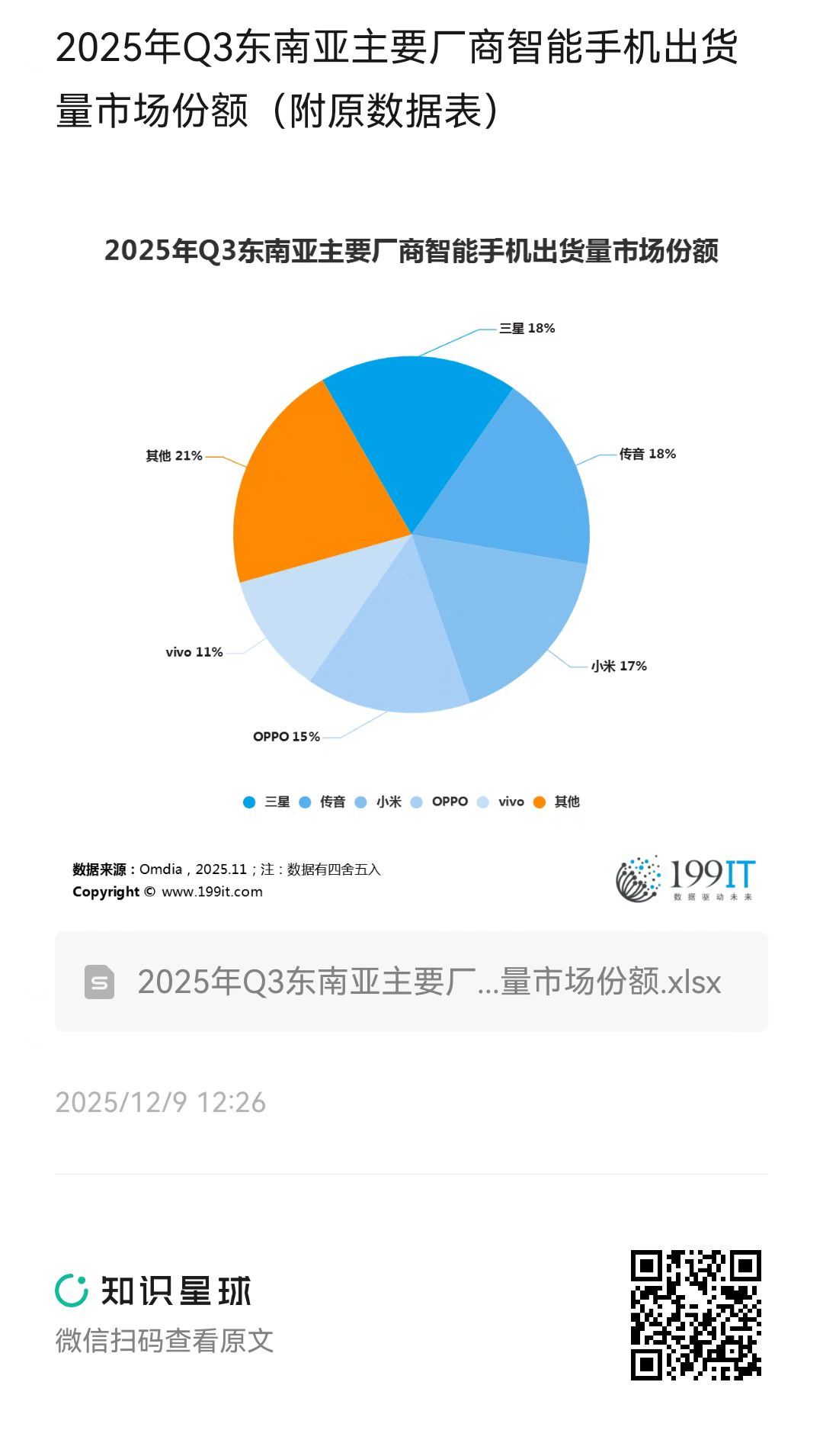 - 2025年Q3泰国主要厂商智能手机出货量市场份额(附原数据表)