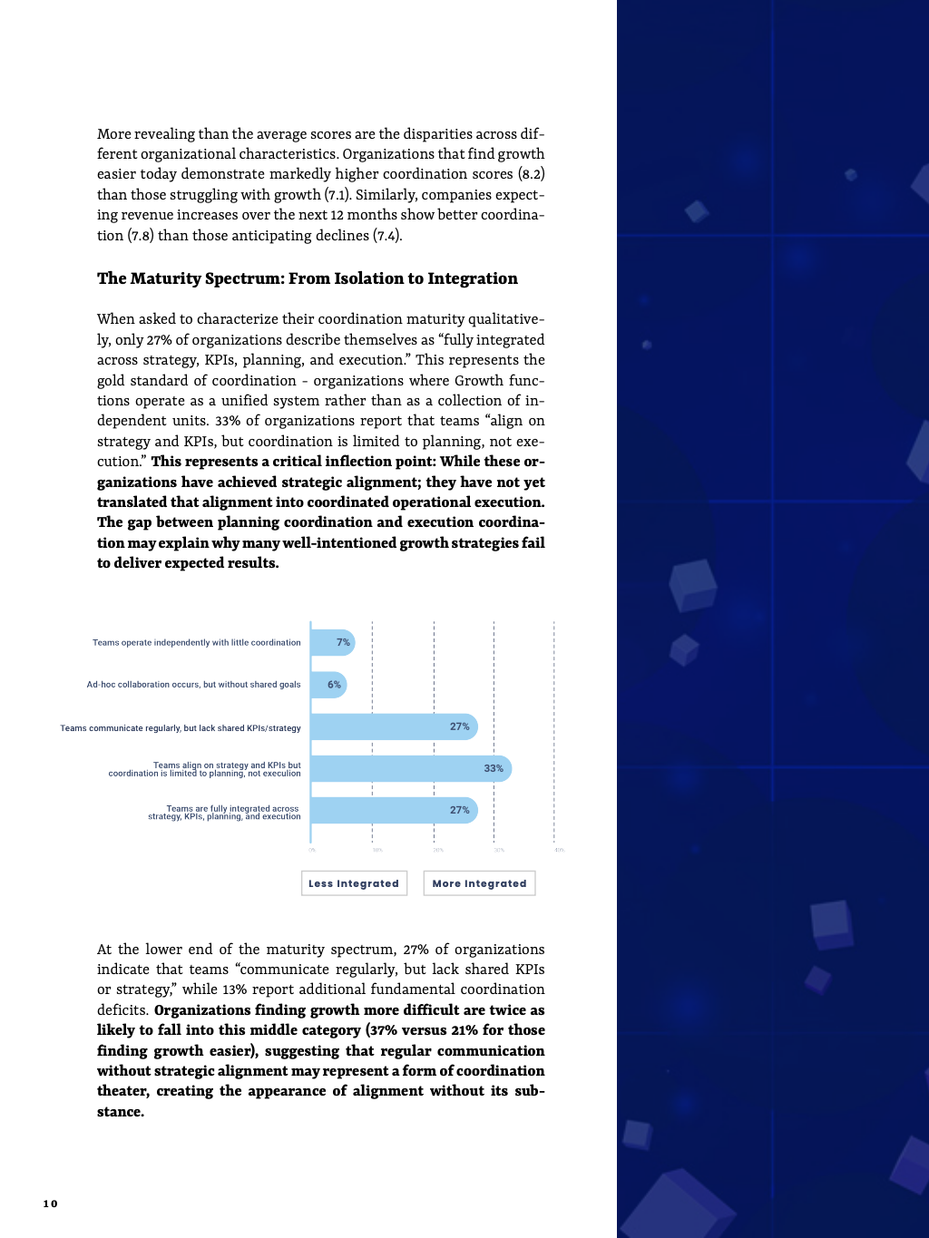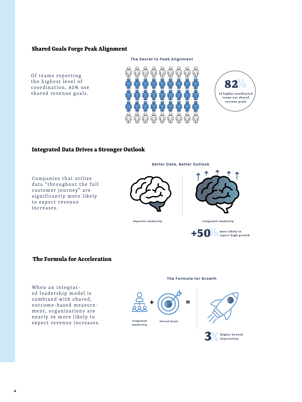 协同的乘数效应明显:当整合型领导与以成果为导向的共享衡量结合时,组织对收入增长的预期近乎提高3倍;在最高协调的团队中,82%采用共享的营收目标。