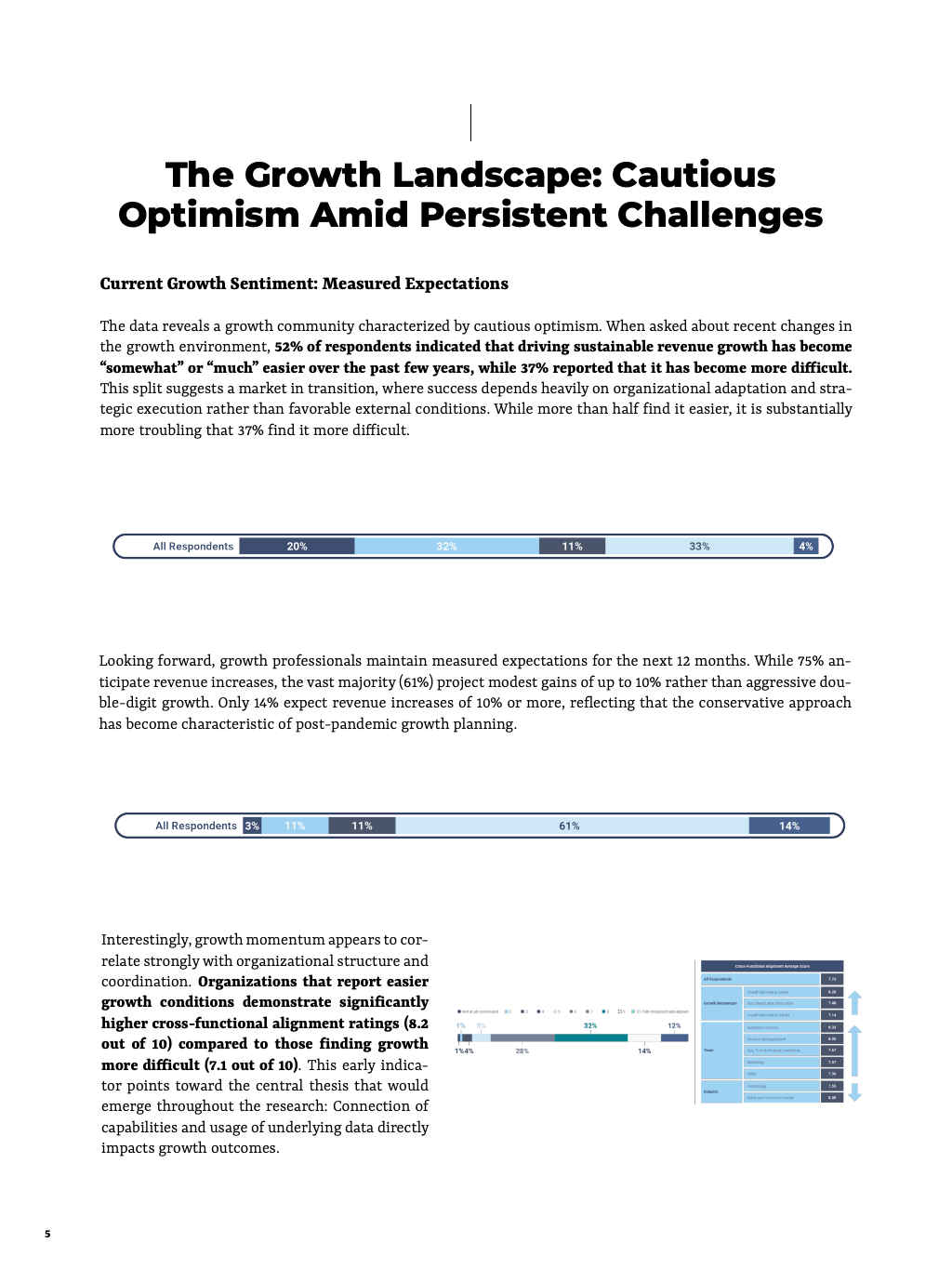 当前增长情绪呈审慎乐观:52%认为近年推动可持续增长更容易,37%感到更困难;展望12个月,75%预计收入会增加,但61%预计增幅不超过10%,仅14%预计出现两位数增长。