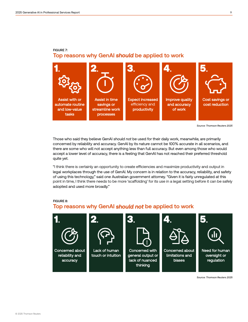这种内部战略的模糊性延伸到了客户端。尽管57%的客户希望其合作的专业服务公司使用AI以提升效率,但现实中存在巨大的信息鸿沟。例如,高达71%的法律服务客户和近60%的税务服务客户坦言,他们不清楚合作事务所是否已应用AI技术。客户的期望与服务商的实践之间缺乏有效沟通,阻碍了技术价值的传递与实现。