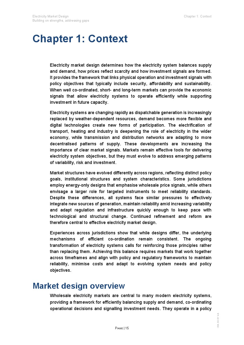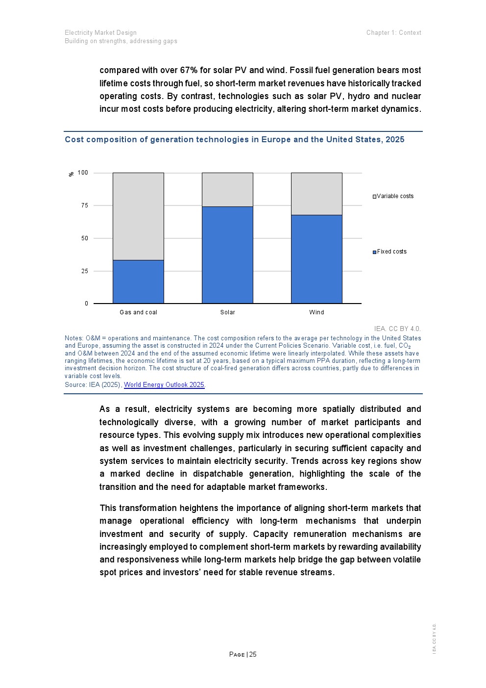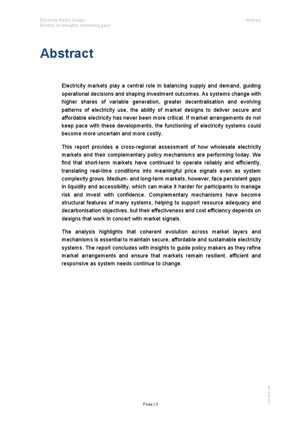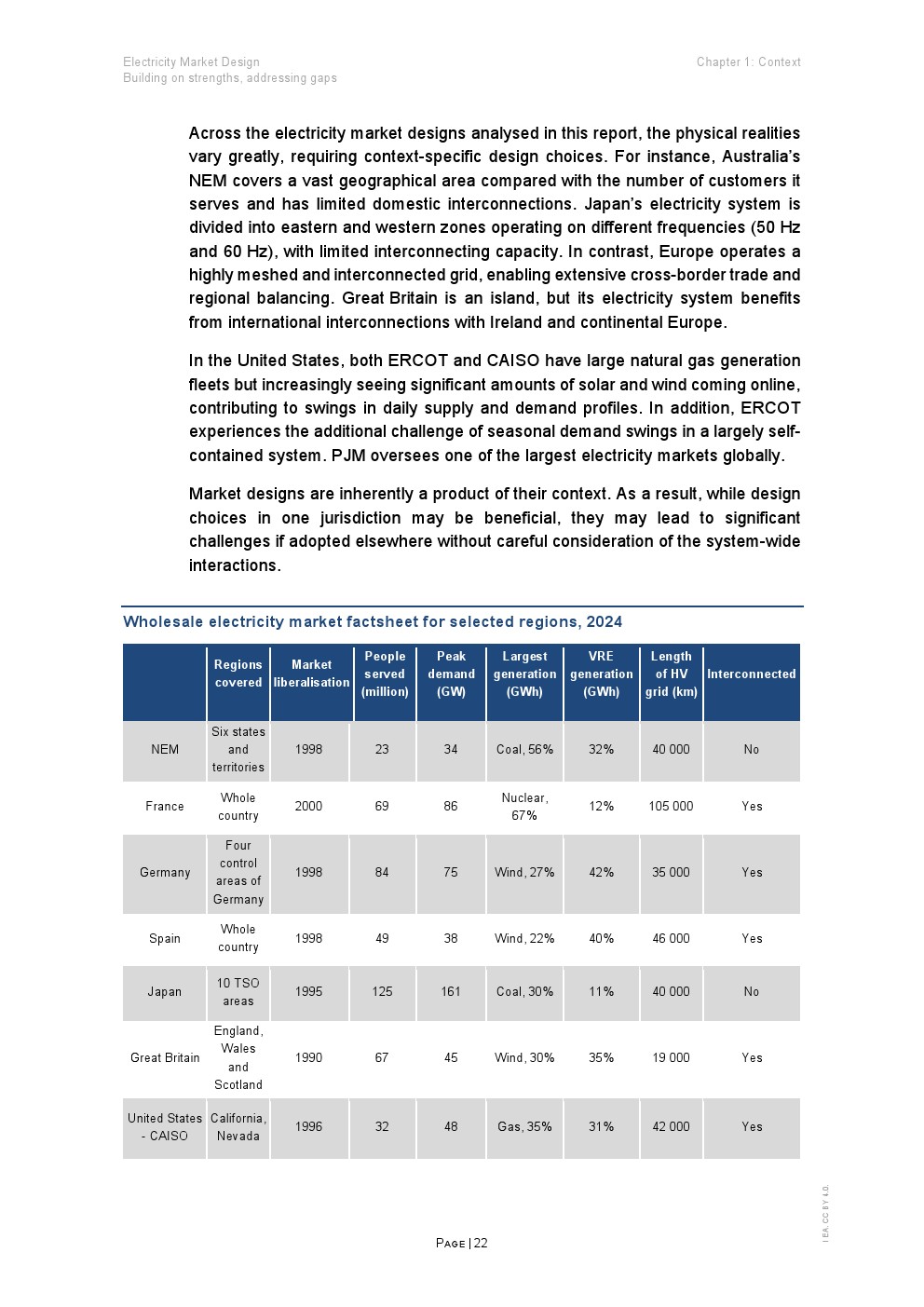 国际能源署最新发布的《Electricity Market Design》报告,对欧洲、美国、日本与澳大利亚等主要电力市场进行了系统性评估。报告指出,随着可再生能源占比快速提升、电力需求重新进入增长通道以及系统复杂性上升,电力市场设计已成为影响能源安全、价格稳定与投资效率的核心制度变量。若市场机制调整滞后,系统运行不确定性和总体成本将明显上升。