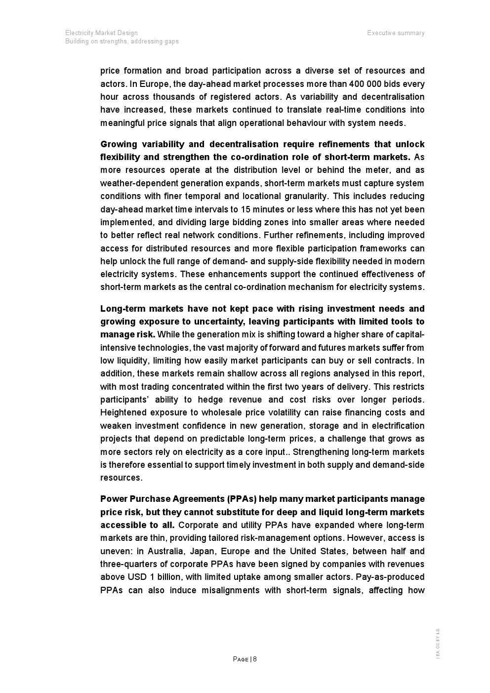 电力购买协议在一定程度上填补了长期定价工具的缺口,但其覆盖面存在明显不均衡。在欧美、日本和澳大利亚,约50%至75%的企业PPA由年收入超过10亿美元的大型企业签署,中小主体参与度有限。同时,“按发电量结算”的PPA在低价或负价时段可能削弱短期市场的调节功能,放大系统运行偏差。报告认为,PPA无法替代一个深度充足、对所有主体开放的长期市场体系。
