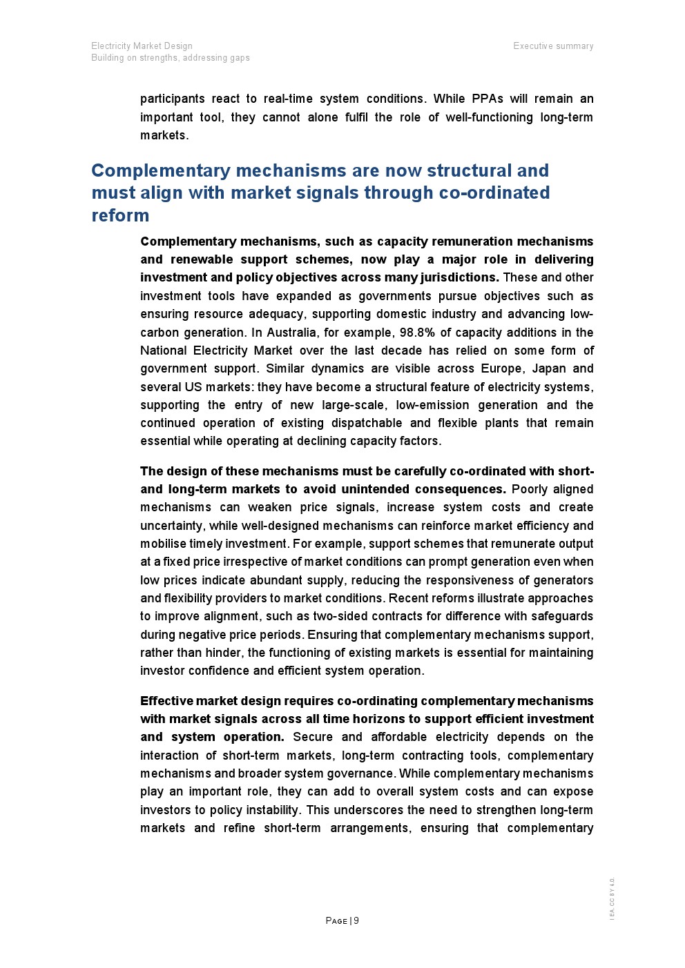 随着容量机制和低碳支持政策普及,补充性机制已从临时工具转变为结构性安排。例如,澳大利亚国家电力市场过去十年中,98.8%的新增装机依赖不同形式的政府支持。这些机制在保障充足性和推动脱碳方面发挥了关键作用,但若与市场价格信号脱节,可能扭曲调度行为并抬升系统总成本。